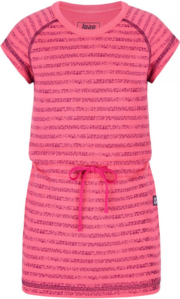 Dívčí sportovní šaty BACY s minirukávem jsou vyrobené ze 100% bavlny. Mají klasický střih (Regular Fit) s lodičkovým výstřihem a nízkým pasem, který má nastavitelné stahování na kulatou tkaničku. Celopotištěné šaty s gramáží 160 g/m2 zdobí jemný proužek. Mají dvě otevřené kapsy na bocích. Skvěle se hodí na každodenní nošení – do školy, do města i na volný čas. Perte na 30 °C s aviváží. Materiál: 1...