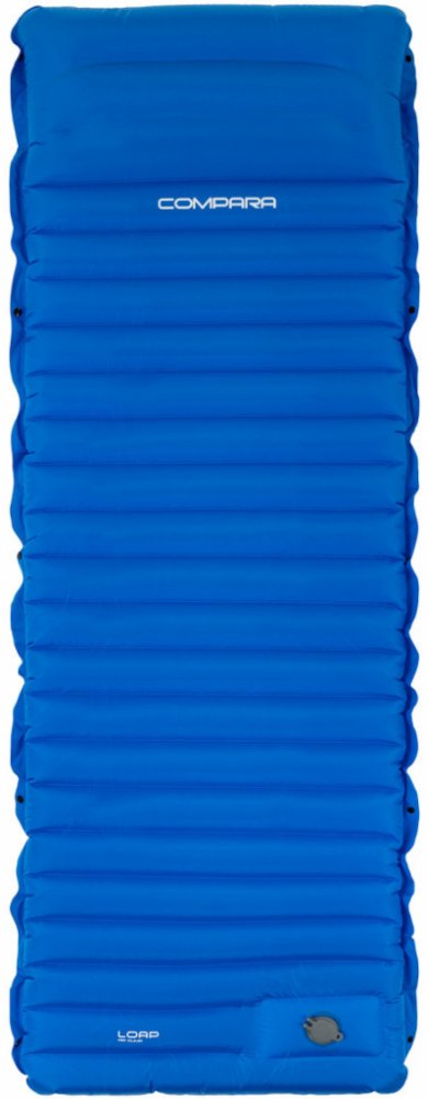 Samonafukovací karimatka loap compara s integrovanou pumpou je extrémně pohodlná a přispívá ke kvalitnímu spánku díky polštářku v hlavové části podložky, výraznému žebrování po celé ploše a tloušťce 10 cm. Nosnost má až 200 kilogramů, zatímco sama váží jen 1140 gramů. Tato výrazná samonafukovačka se hodí na kempink, turistiku a stanování od jara do podzimu. Není určena k použití na vodě. Karimatka se dá přeložit na polovinu. Součástí balení je i opravná sada na případné poškození způsobené běžným používáním. Integrovaná pumpa. Nadstandardní délka 195 cm a tloušťka 10 cm. Výrazný design