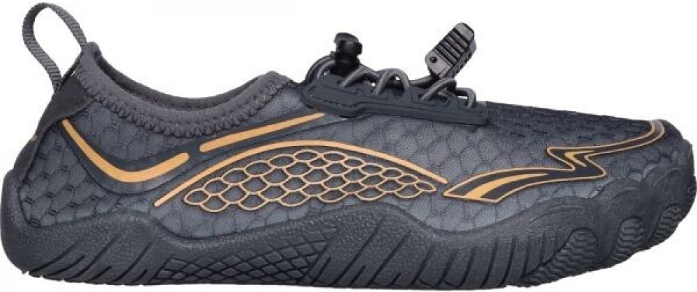 Chystáte se k moři? Přibalte dětské boty do vody Loap CORKY, ať si vaše děti užijí dovádění na břehu i mělčině bez rizika zranění. Skvěle se hodí i na vodní sporty. Svršek je z prodyšné a rychleschnoucí textilie, doplněné zpevňujícím polyuretanem. O přilnavost a prevenci uklouznutí se postará podešev z PVC. Kromě trakce a odolnosti patří mezi její přednosti také pružnost, flexibilně se tak přizpůsobí tvaru nohy i chůzi po různých površích. Na noze jsou boty velice příjemné díky stélce z EVA pěny, která pomáhá tlumit nárazy. Obouvání usnadní poutko na patě a na nártu lze boty stáhnout pomocí elastické gumy s brzdičkou.