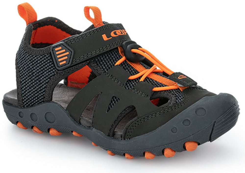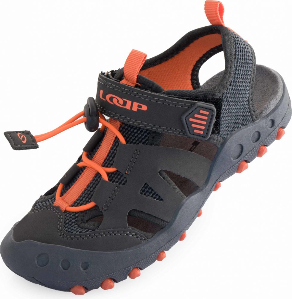 Dětské vycházkové sandály loap cermina mají svršek z kvalitního polyuretanu, který je pevný v tahu. Stahování je na elastickou gumičku a textilní pásek na suchý zip. Obouvání je snadné a rychlé také díky poutku na jazyku a na patě. Podšívka je z tricotu, stélka ze syntetické kůže a podešev z odolné pryže. Sandály mají praktické syntetické překrytí špičky, které brání poranění prstů. Pata sandálů j...
