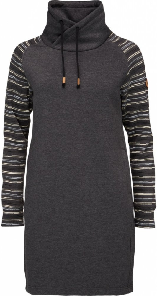 Elegance, nebo pohodlí? S dámskými mikinovými šaty Loap EBNERA získáte obojí. Materiál je kombinací bavlny a polyesteru, na těle jsou tak příjemné, zároveň si zachovávají dlouhodobě tvar. Při celodenním sezení v práci nebo ve škole oceníte nízkou mačkavost. Vyšší gramáž se postará o komfort i za chladnějších dnů a praktický límec, díky němuž vám nikdy nebude táhnout na krk, si doslova zamilujete. Šaty jsou ušity v klasickém střihu s raglánovými rukávy a spodním okrajem bez stahování. Vzor na rukávech jim přidává na originalitě, dvě kapsy na bocích podtrhnou sportovní vzhled.