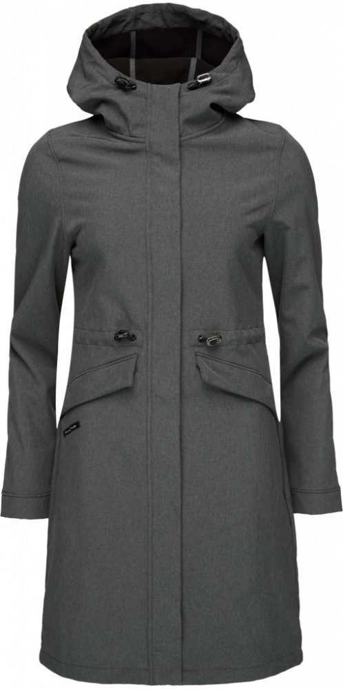Softshell poskytuje skvělé vlastnosti co do odolnosti i pružnosti, v kombinaci s voděodolnou membránou AQUA PRO o vodním sloupcí 5 000 mm a prodyšnosti 5 000 g/m2/24h vás udrží v suchu bez ohledu na stupeň vlhkosti. Kabát je ušit v klasickém střihu se zapínáním na dvoucestný reverzní spirálový zip, díky čemuž je možné jej rozepnout z obou stran. Pas lze libovolně stáhnout pomocí gumičky, nastavitelná je i pevná kapuce, oproti tomu spodní okraj a rukávy jsou bez stahování. Na peněženku, mobil nebo klíče přijdou vhod dvě kapsy na bocích.