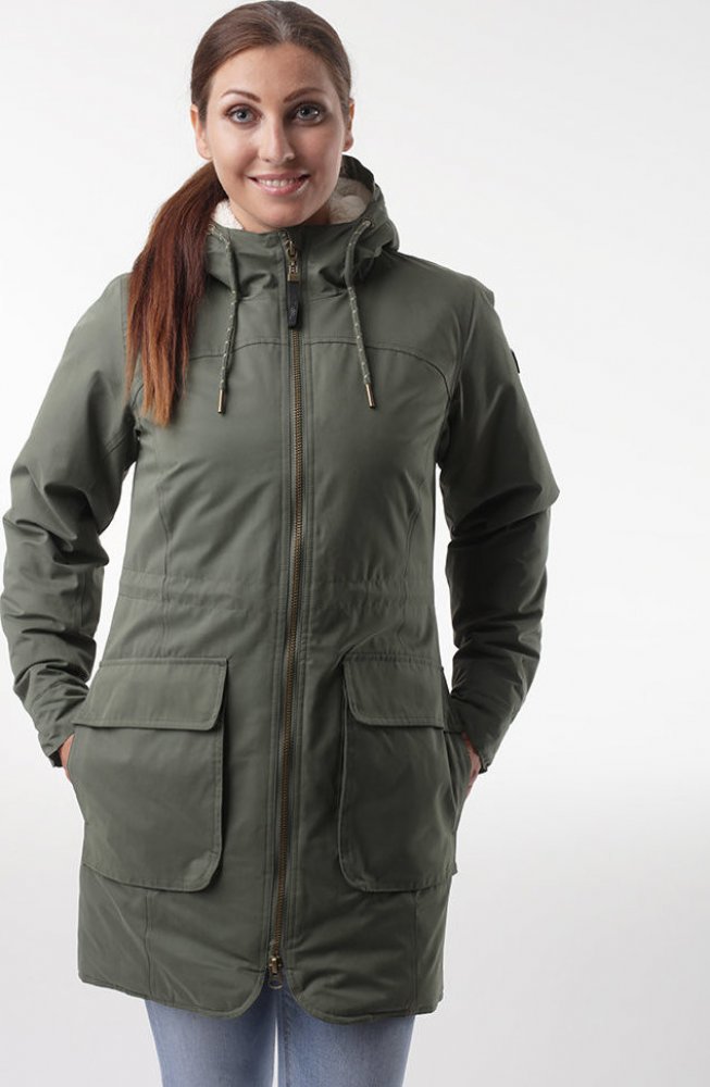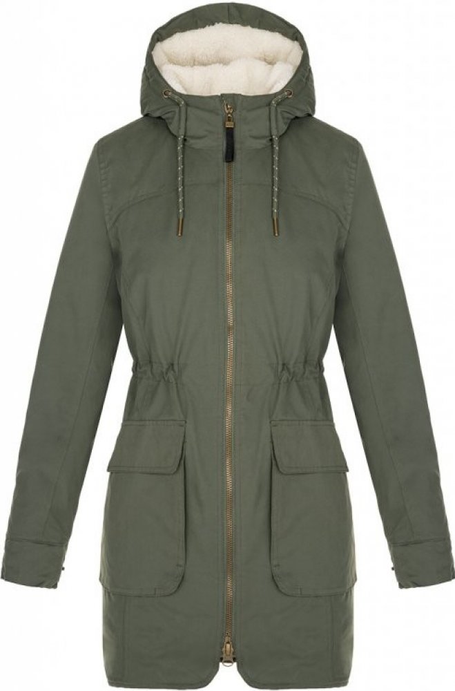 Dámský zimní kabát s kapucí LOAP NATALI je určen na každodenní nošení do města a má klasický střih s prodlouženým zadním dílem. Kabát je voděodolný (vodní sloupec 3000 mm, prodyšnost 800 g/m²/h) s funkční membránou AQUA PRO. Svršek bundy je ze STORMEXU, zesílených syntetických vláken, která spolehlivě odolávají ostrému větru i dešti. Výplň tvoří dutá vlákna POLYTHERM, která nejenže hřejí, ale mají také výbornou tvarovou paměť. Ta zlepšuje izolaci i pocit pohodlí při nošení. Rukávy se stahují na druky a spodní okraj kabátu je klasický bez stahování. V pase je nastavitelné stahování na tkaničku.