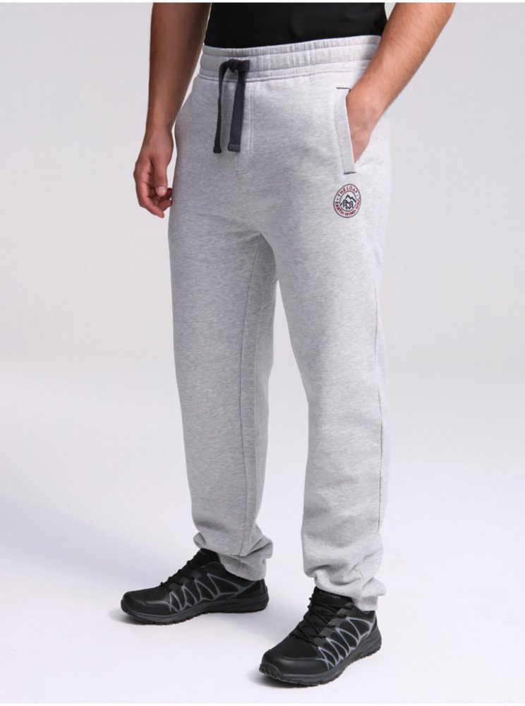 Volnočasové pánské tepláky loap edikant jsou ušity v klasickém střihu z bavlny a polyesteru. Jsou příjemné na dotek, dobře drží tvar a mačkají se méně než 100% bavlněné tepláky. Tyto žíhané tepláky mají elastický pas se stahováním na ploché tkaničky, elastický spodní okraj a dvě boční kapsy bez zipu. Na stehně jsou ozdobené decentním kulatým potiskem. Jsou ideální na lehké sportovní aktivity, cest...