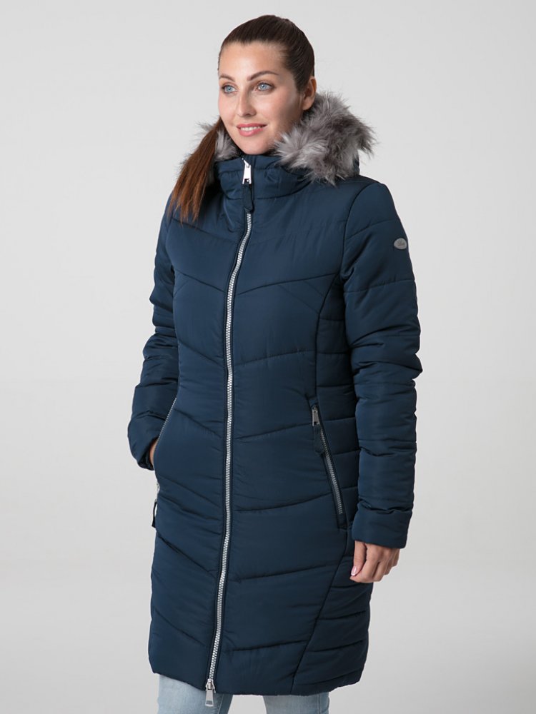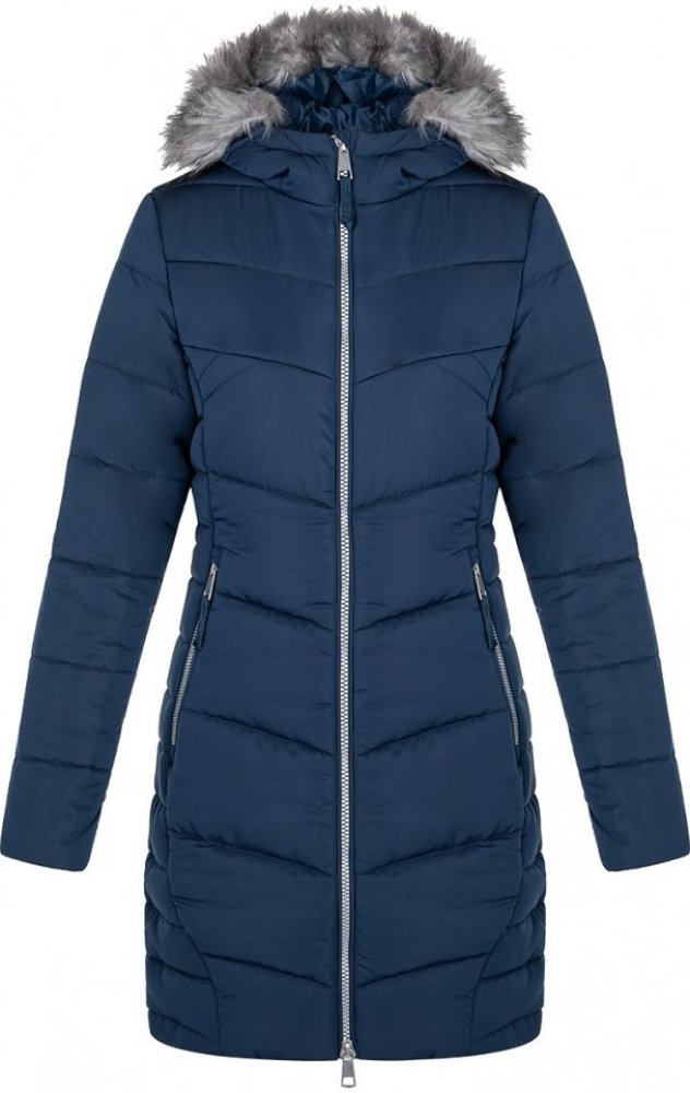 Dámský prošívaný kabát LOAP TAFURA má prodlouženou délku ke kolenům a mírně prodloužený zadní díl. Vodoodpudivý materiál STORMEX se zátěrem DRYTECH Vás spolehlivě ochrání v sychravém počasí. Má příjemnou podšívku a hřejivou výplň POLYTHERM z dutých vláken. Přiléhavý zimní kabát má kapuci s odepínatelnou kožešinou na zip a magnet. Oboustranný kostěný zip s metalickým efektem má praktické krytí brad...