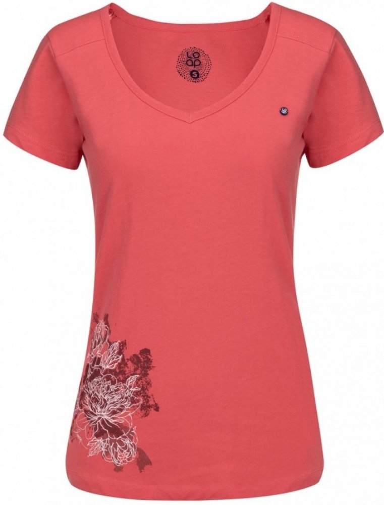 Dámské bavlněné triko ABIGALE má krátké rukávy a výstřih ve tvaru zaobleného písmene V, zdobí ho decentní květinový potisk.