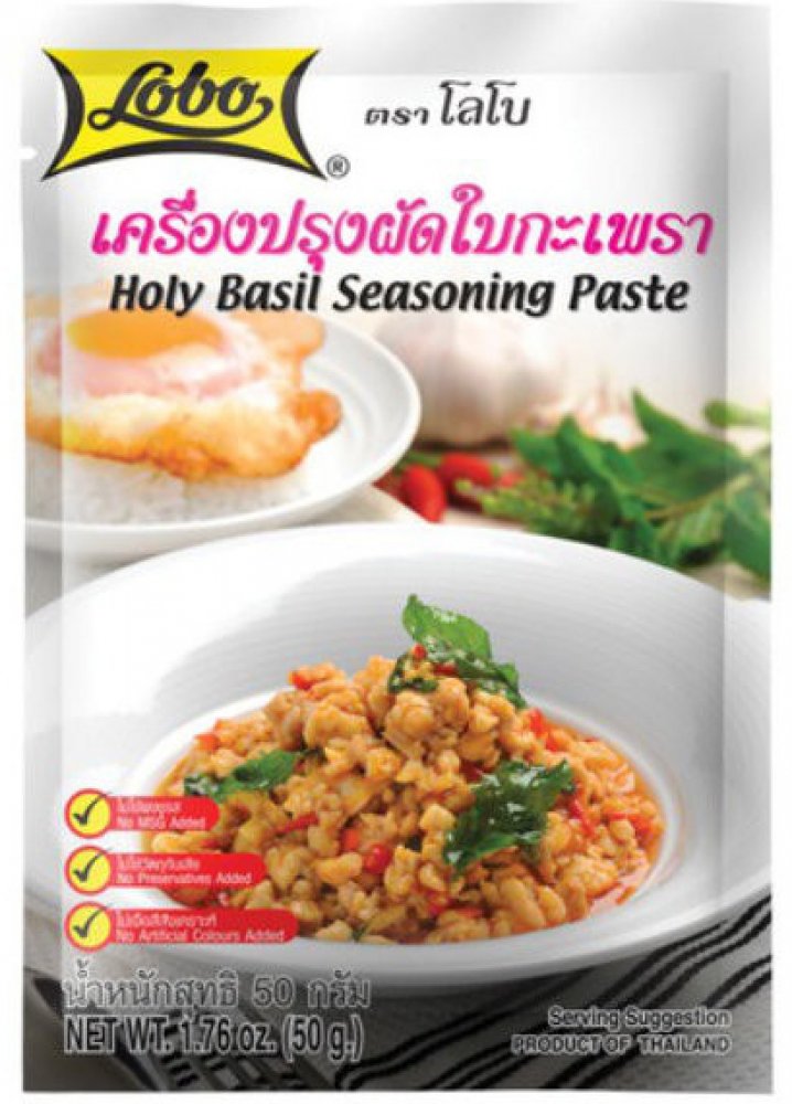 Složení: Chilli, listy bazalky 15%, sójová omáčka (sójové boby, pšenice, sůl), česnek, cibule, cukr, sojový olej, sůl, rybí omáčka (extrakt ze sardele, sůl, cukr), modifikovaný tapiokový škrob, hydrolyzované rostlinné bílkoviny (kukuřice, kvasnicový extrakt), příchuť.