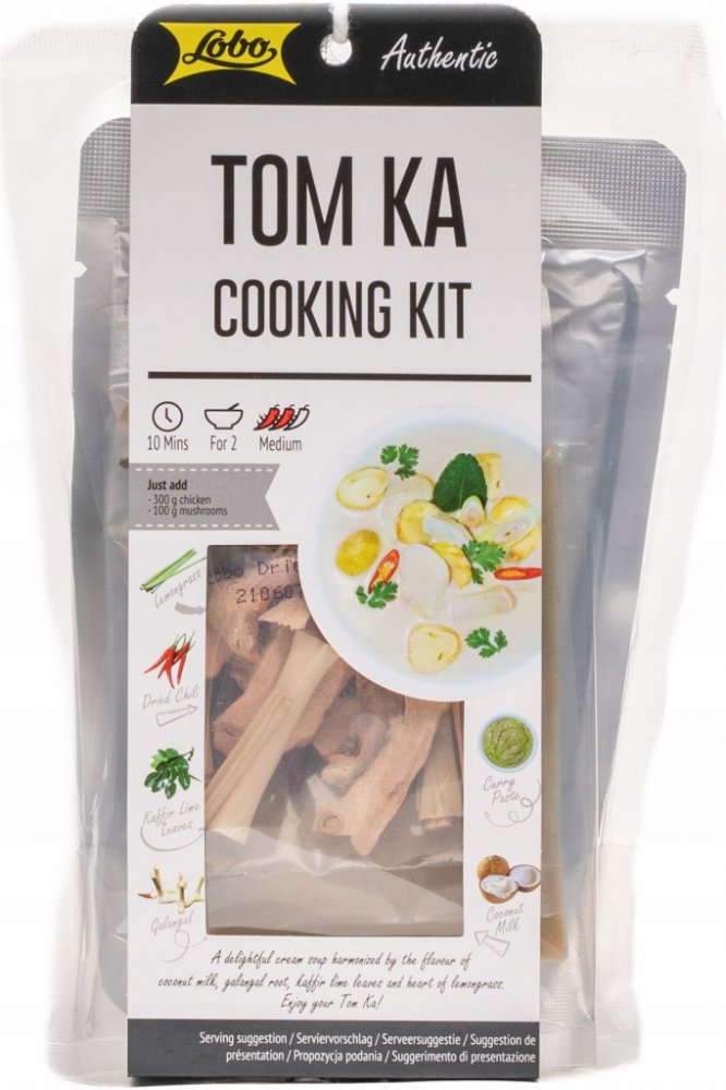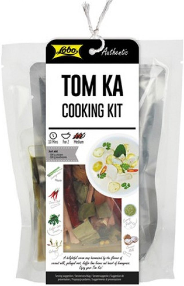 Toto balení je speciálně navrženo pro zjednodušení přípravy thajské polévky Tom Ka. Balení obsahuje pastu, koření a kokosové mléko.