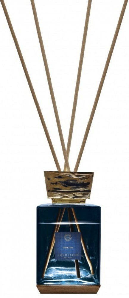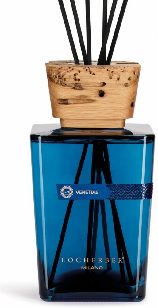 Luxusní aroma difuzér vhodný do prostorných obytných i komerčních interiérů. Rafinovaný italský design podtrhává ručně barvená skleněná nádoba s tkanou žakérovou etiketou, unikátní ručně zpracované víčko ze dřeva "Briccole", tyčinky z bukového dřeva a prvotřídní parfém. Do difuzéru se vloží přibalené tyčinky o délce až 100 cm, které nasají a následně uvolňují parfém do okolního prostředí. Každý aroma difuzér s parfémem Venetiae je díky dřevěnému víčku z Benátek unikátem a doslova uměleckým zážitkem, který zdobí a provoní zároveň.