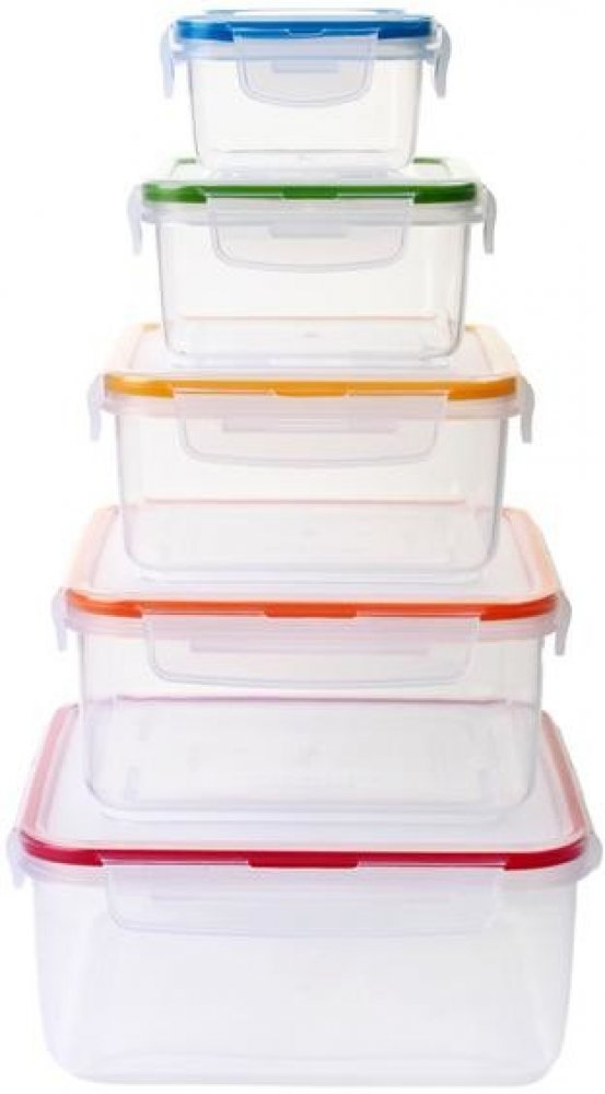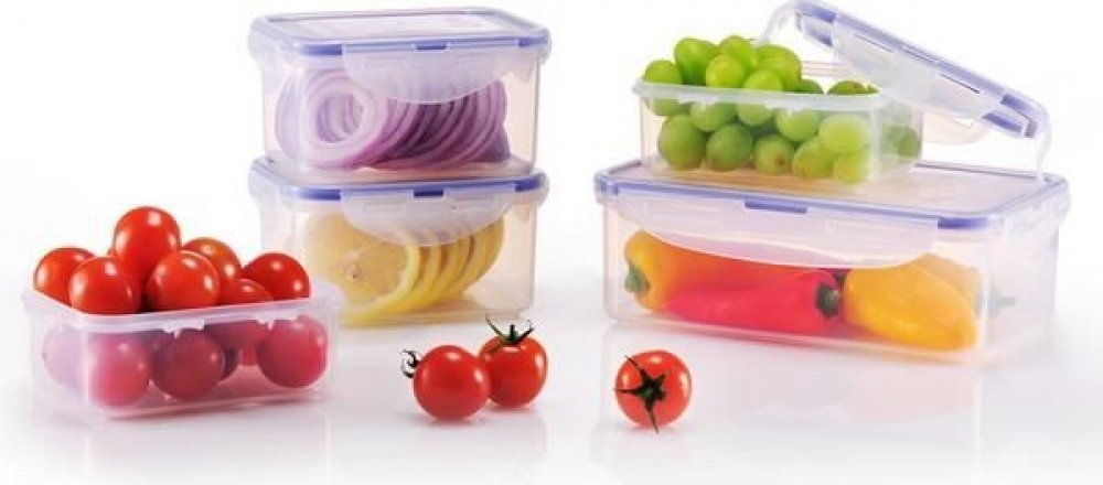 Sada 5 dóz lock s patentními víky. Dózy lock jsou bezpečné a funkční nádoby vyrobené z kvalitního plastu, který je trvanlivý a odolává vysokým teplotám. Tyto dózy jsou 100% vzduchotěsné a tím zajišťují dlouhodobou čerstvost uchovávaných potravin. Čtyři pohyblivé "klipy" zajišťující víko jsou odolné proti opotřebení. Dózy lock lze použít v chladničce, mikrovlnce nebo pro zmražování a lze je mýt v myčce na nádobí. Dózy lock prošly přísnými hygienickými zkouškami a odpovídají nejpřísnějším předpisům. Rozměry jednotlivých dóz: 2 dózy á 350 ml/13,5x10,2x5,2 cm 2 dózy á 470 ml/13,5x10,2x6,8 cm 1 dóza á 1000 ml/20,5x13,4x6,9 cm.