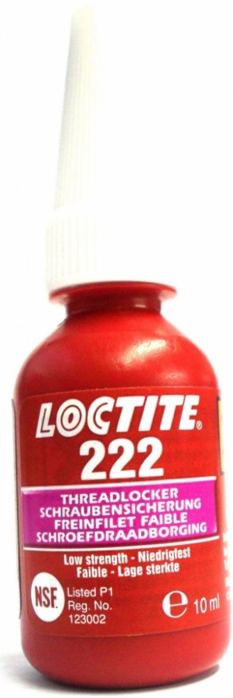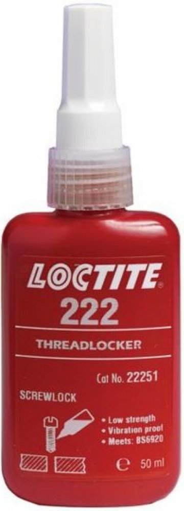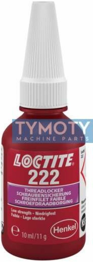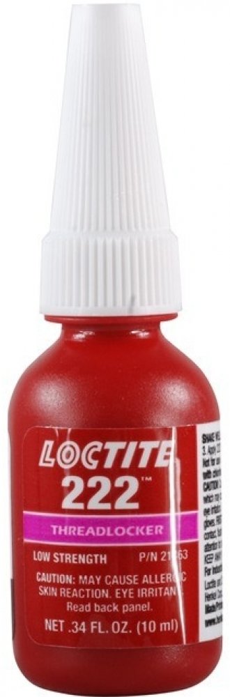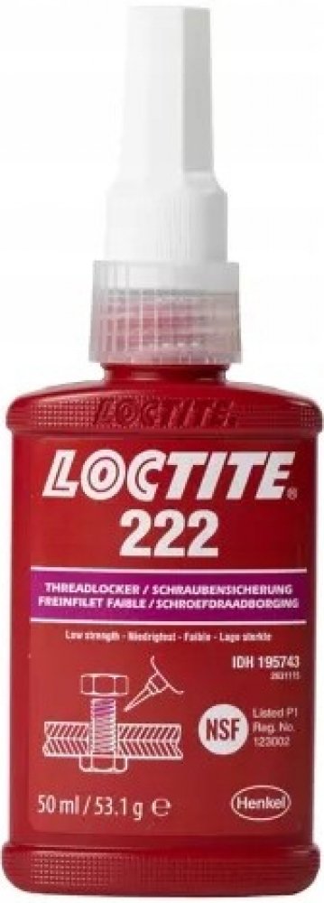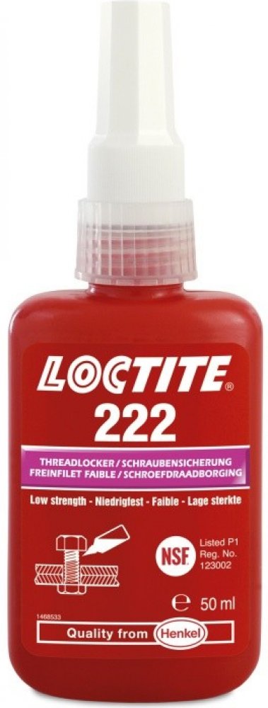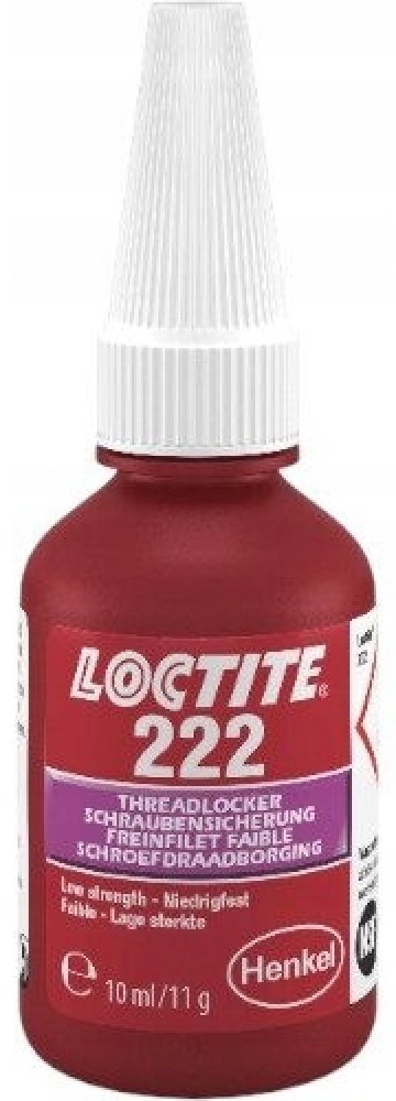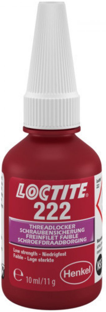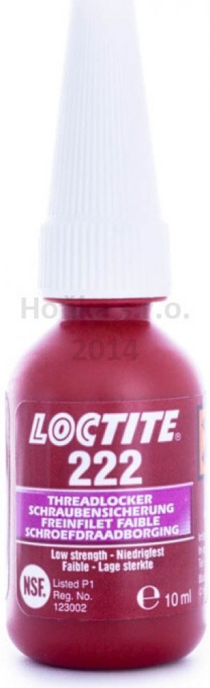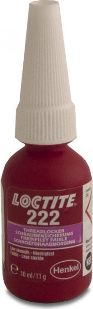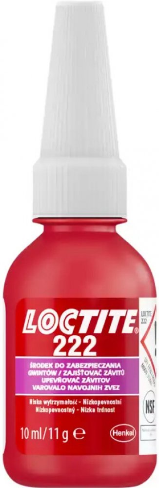 LOCTITE® 222 je určen pro zajišťování a těsnění závitových spojů které vyžadují snadnou demontáž za použití běžného ručního nářadí. Produkt vytvrzuje bez přístupu vzduchu ve spáře mezi lepenými kovovými povrchy a zabraňuje uvolnění či prosakování spoje, které je způsobené vibracemi a rázy. Je zejména vhodný pro takové aplikace, jako je zajištění stavěcích šroubů, závitů malého průměru nebo dlouhých závitových spojů, kde je požadována snadná demontáž bez poškození šroubu. Tixotropní charakter LOCTITE® 222 zabraňuje jeho stékání z místa nanesení.
