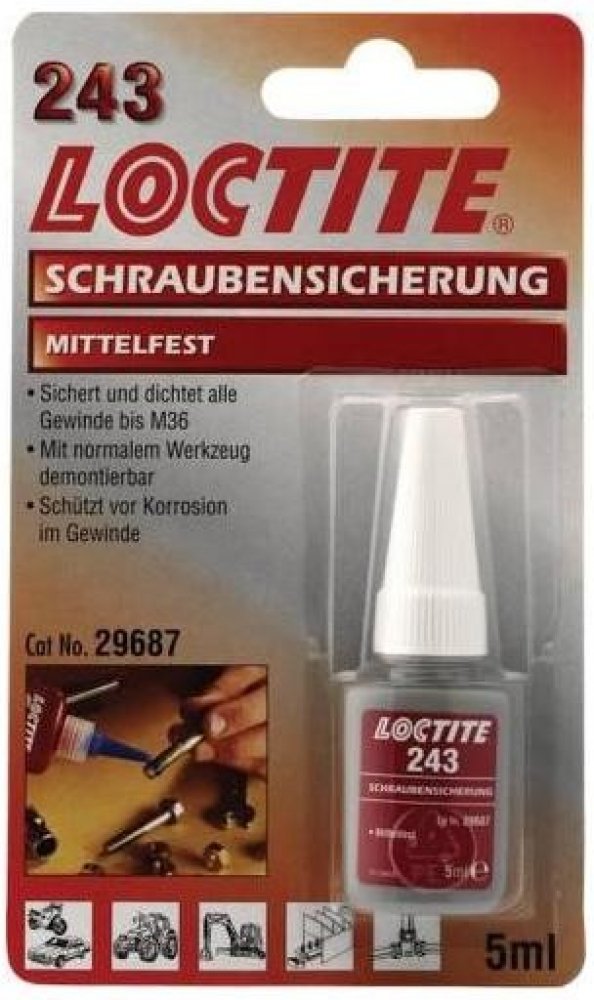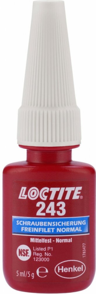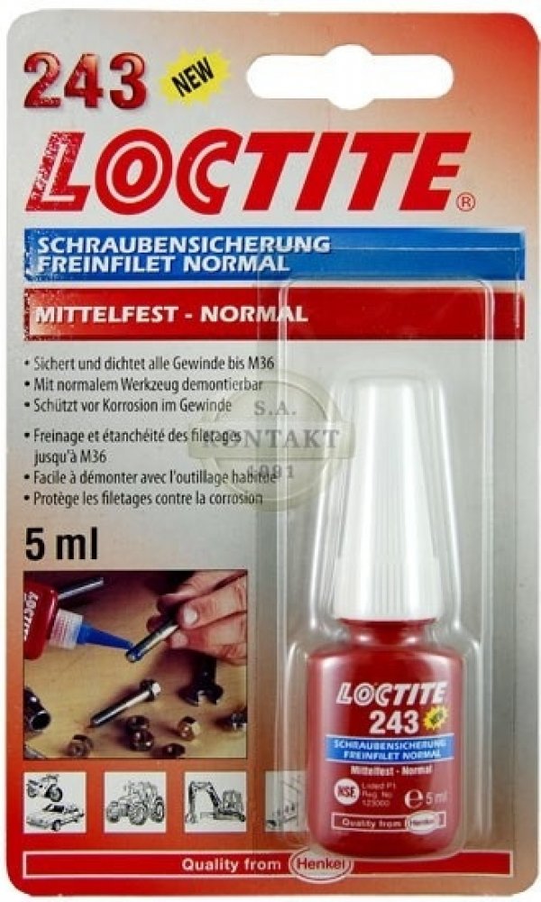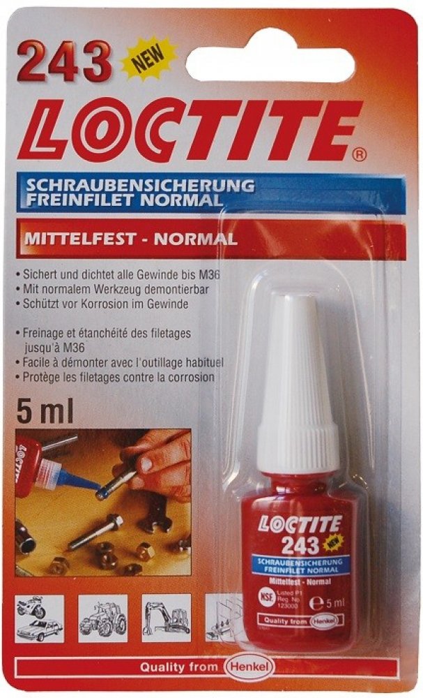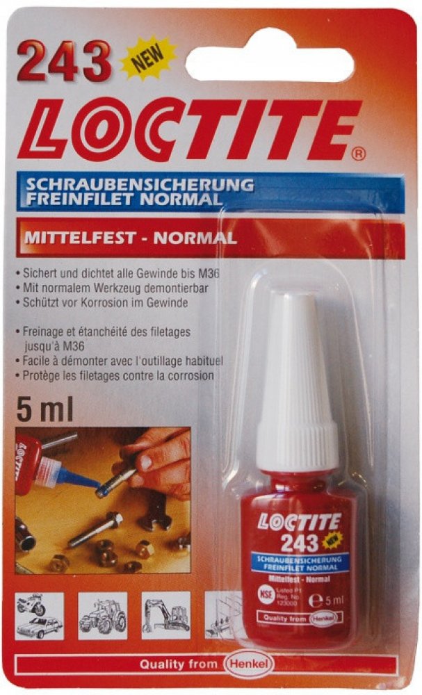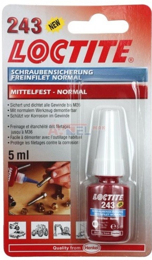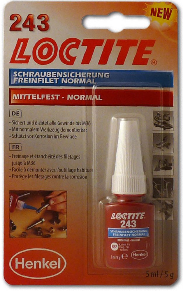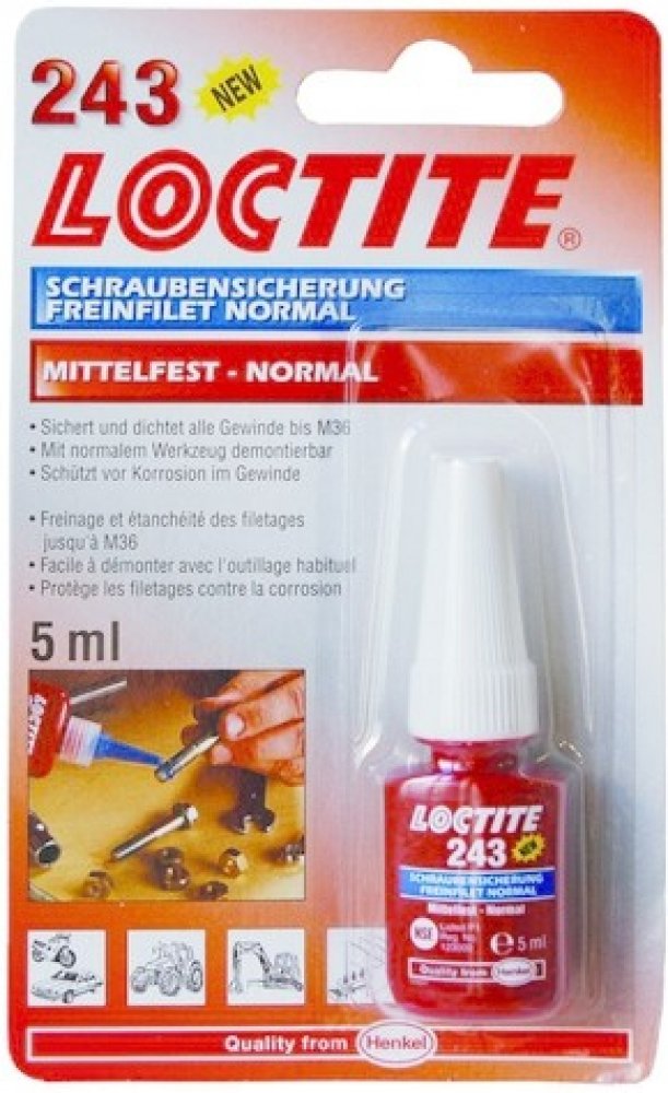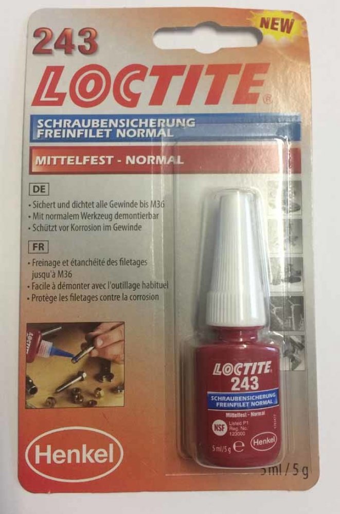 - Dostupné balení: Loctite 243 - 5 ml, Loctite 243 - 10 ml, Loctite 243 - 24 ml, Loctite 243 - 50 ml, a nebo Loctite 243 250 ml