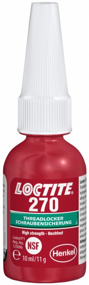 LOCTITE 270 je určen pro trvalé upevňování a utěsňování závitových spojů. Produkt vytvrzuje bez přístupu vzduchu ve spáře mezi lepenými kovovými povrchy a zabraňuje uvolnění či prosakování spoje, které je způsobené vibracemi a rázy. Loctite 270 je zejména vhodný pro aplikace na vysoce zatěžovaných spojeních, jako jsou svorníky v tělese motoru, matice na svorníkách čerpadel a na dalších závitových ...
