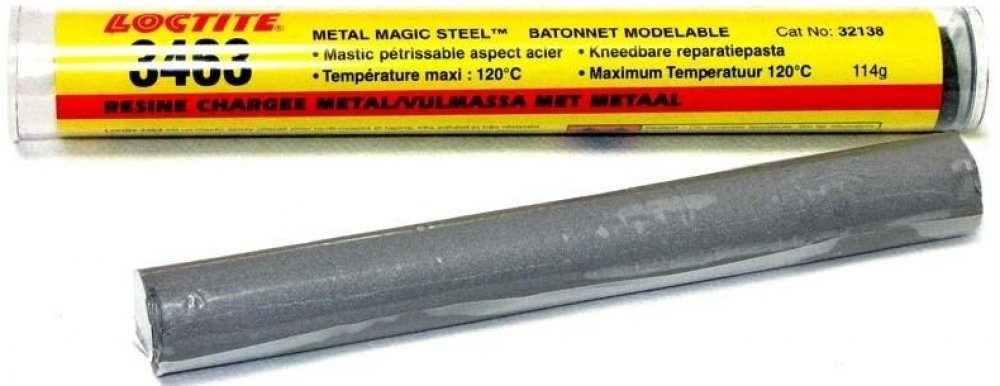 je všestranný, dvousložkový, snadno použitelný, ocelí plněný epoxidový tmel. Používá se jako tmel a když vytvrdne, má vysokou pevnost v tlaku a dobrou adhezi k většině povrchů. Tento produkt opraví trhliny v potrubí, vyplní vyběhané díry pro šrouby, vyhladí sváry a opraví nestrukturální defekty v odlitých otvorech nádrží.