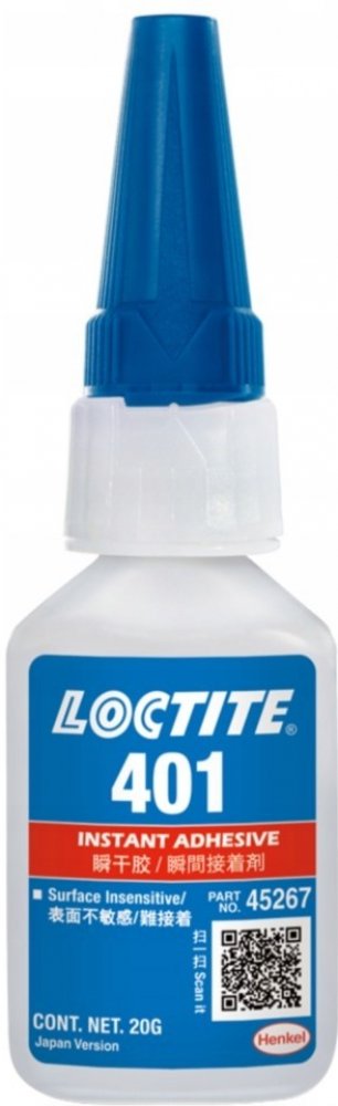 LOCTITE® 401 je vteřinové lepidlo s rychlým vytvrzením, které je určeno ke spojování obtížně lepitelných materiálů, které vyžadují rovnoměrné rozložení zátěže a vysokou pevnost v tahu a střihu. Tento produkt umožňuje rychlé lepení široké škály materiálů, včetně kovů, plastů a elastomerů. LOCTITE 401 je rovněž vhodný pro lepení porézních materiálů, jako je dřevo, papír, kůže a textilie. Ideální pro rychlé opravy.