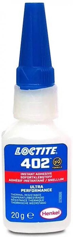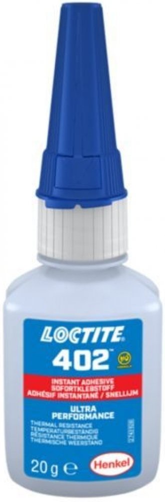 LOCTITE 402 je mimořádně kvalitní, rychle tvrdnoucí vteřinové lepidlo, které má spolehlivé vlastnosti při vysokých provozních vlastnostech až do 135°C. Dosahuje velice rychle manipulační pevnosti na široké škále plastových, pryžových a kovových podkladů – včetně náročných lepitelných materiálů. Je ideální pro spojování malých dílů ve výrobě i pro rychlé opravy za provozu.