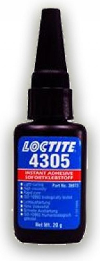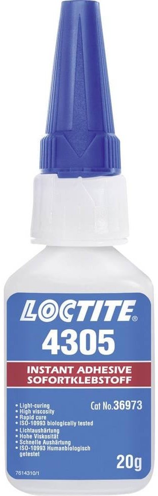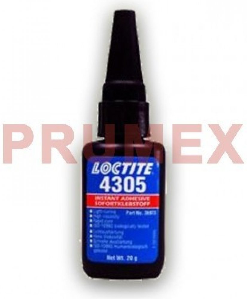 Loctite 4305 je UV vteřinové lepidlo určené pro použití při aplikacích, které vyžadují velmi krátkou dobu fixace, vytvrzení ve spáře a na volném povrchu. Schopnost vytvrzovat UV zářením usnadňuje rychlé vytvrzení produktu na osvícených oblastech povrchu. Čímž je omezen výkvět a zároveň poskytuje alternativu k použití rozpustných aktivátorů. Loctite 4305 je vhodný pro spojování jednoúčelových zdrav...