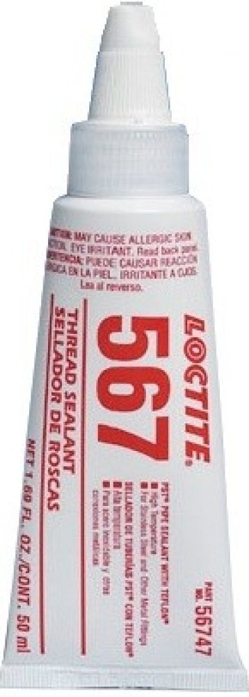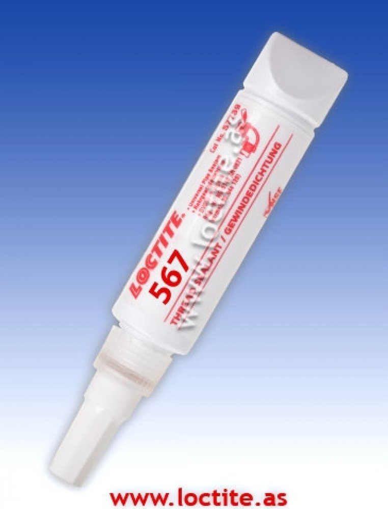 Loctite 567 je speciální vysokoviskózní akrylátové těsnění na kuželové (kónické) závity kovových trubek a tvarovek (např. z nerezové oceli, hliníku) až do rozměru závitu M80. Tento produkt je hladká našedlá pasta s nízkou pevností, která vytvrzuje bez přístupu vzduchu ve spáře, odolává vibracím a rázům a zabraňuje uvolnění či prosakování spoje.