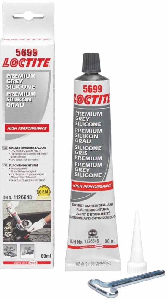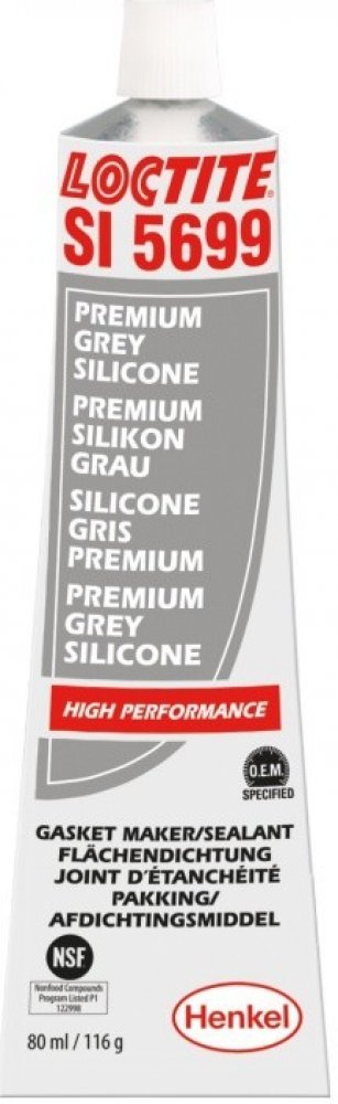 Loctite 5699 Ultra Grey je silikonové plošné těsnění šedé (dříve Ultra Grey). Nekorozivní silikon s vynikající odolností vůči oleji, vodě a glykolům, který je určen v první řadě pro těsnění přírub na tuhých i pružných přírubových spojích jako například u převodovek a litých krytů motorů.