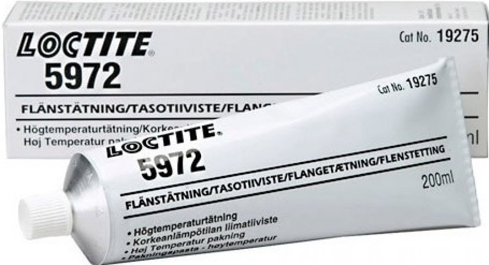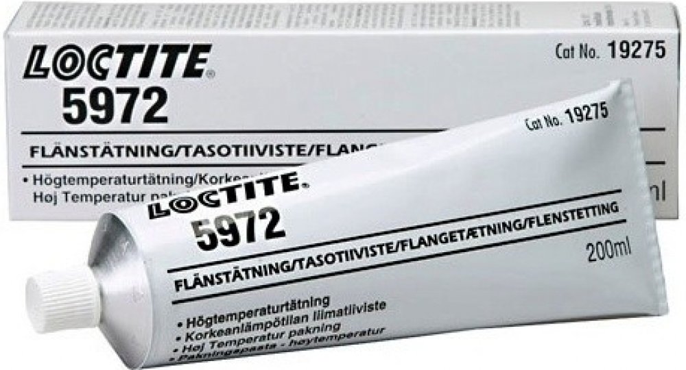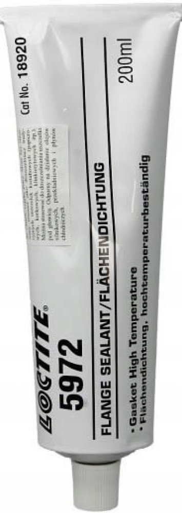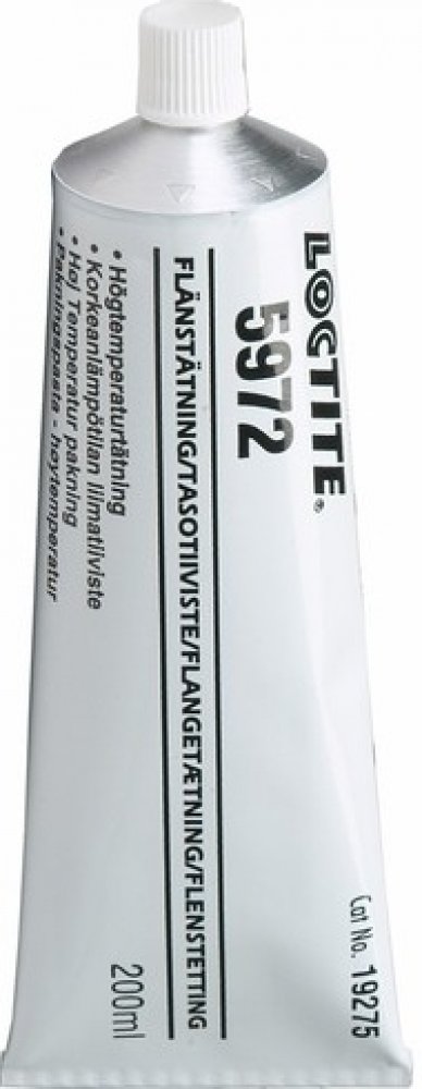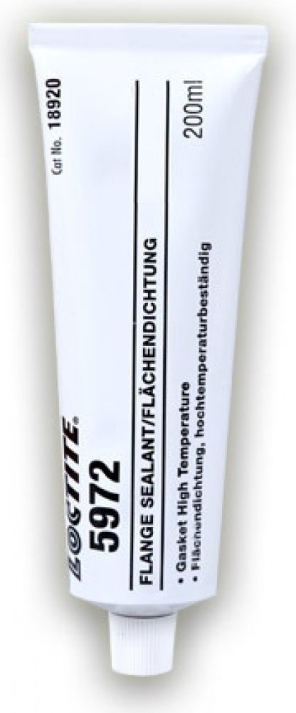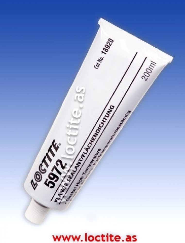 Špičkové vysokoteplotní plošné a závitové těsnění, které je určeno jako utěsňovač závitových spojení a tvarovek nebo jako výkonné těsnění přírub ve spáře nad 2,5 mm. Tento produkt je pomalu tuhnoucí šedá viskózní kapalina s velmi vysokou viskozitou, která si i po úplném vytvrzení zachovává vysokou ohebnost a pružnost. Těsnící šedá kapalina Loctite 5972 je určena k aplikaci na stávající klasické papírové, korkové, plastové nebo kovové těsnění nebo může být použita samostatně přímo na plochy lepené montážní sestavy.