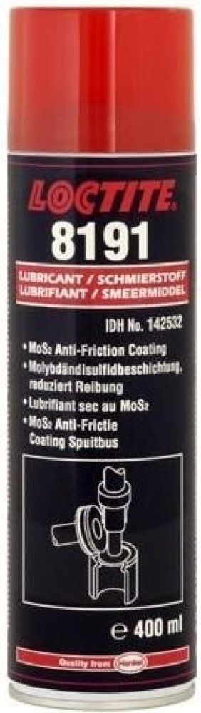 LOCTITE® 8191™ tvoří nalepený povlak na bázi sirníku molybdeničitého při pokojové teplotě. Povlak funguje jako suché mazivo zabraňující hromadění prachu a špíny. Povlak vytváří ideální kluzný povrch pro volný pohyb pantů, skluzavek v dopravníkových systémech a pod. Rovněž umožňuje protikorozní ochranu kovových povrchů. Rychle zasychá na vzduchu a chrání povrchy před třením a korozí. Zlepšuje účinn...