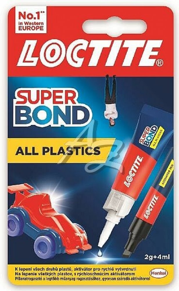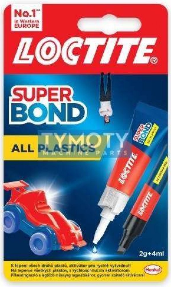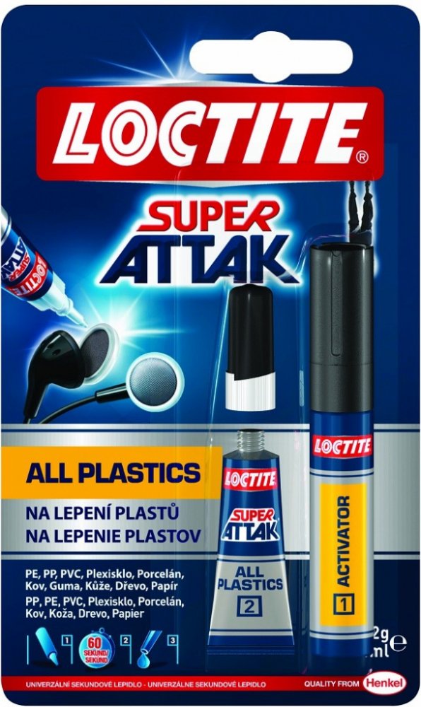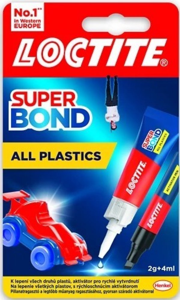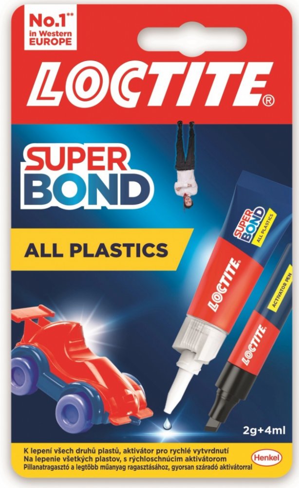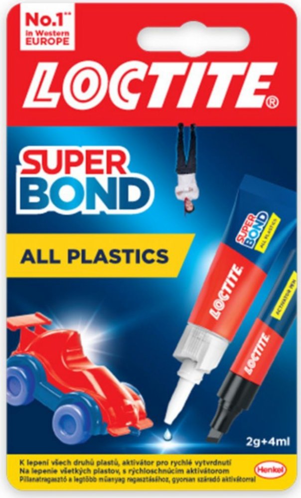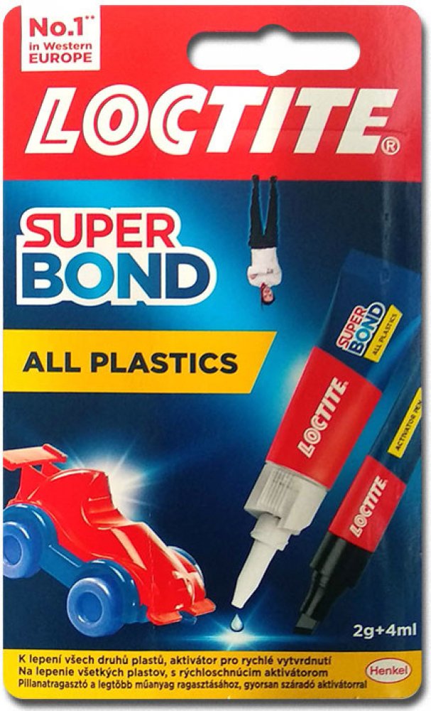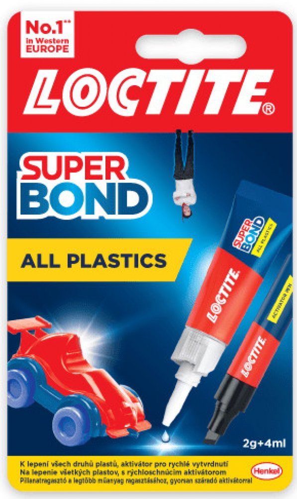 Loctite Super Bond All Plastics je vysoce účinná dvoudílná sada, která zahrnuje vteřinové tekuté lepidlo a aktivační pero. Tento produkt je speciálně navržen pro lepení široké škály plastů v domácnosti a dalších materiálů. Je ideální pro obtížně lepitelné plasty, jako je polyethylen a polypropylen, ale také efektivně lepí gumy, kovy, dřevo, keramiku, kůži, látky, papírové kartony a papír.