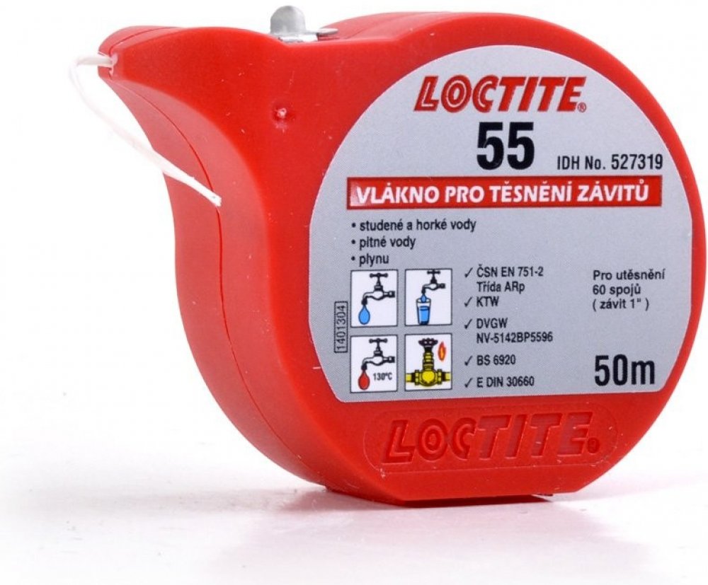 Loctite 55 je závitové těsnění pro všeobecné použití, které se ve formě šňůry navíjí přímo z obalu na závit trubky. Dodává se v pohotových obalech, ve kterých se skladuje a ze kterých je přímo aplikován. Doporučuje se pro těsnění kuželových i válcových závitů u kovových i plastových trubek a tvarovek až do velikosti 4 palců.