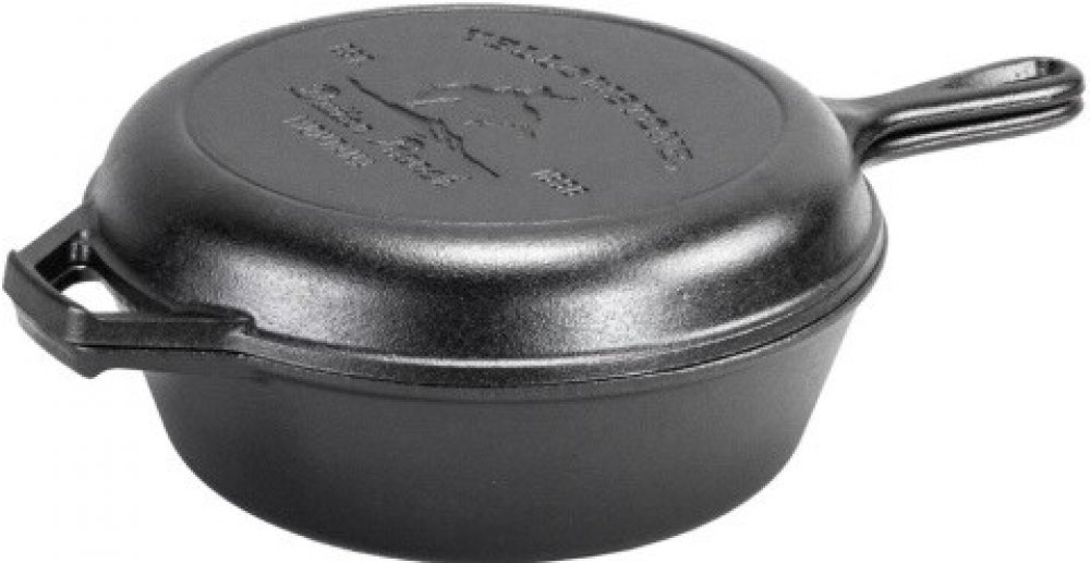 Originální litinová pánev LODGE Yellowstone Combo, dvoudílný set pánví. Hluboká