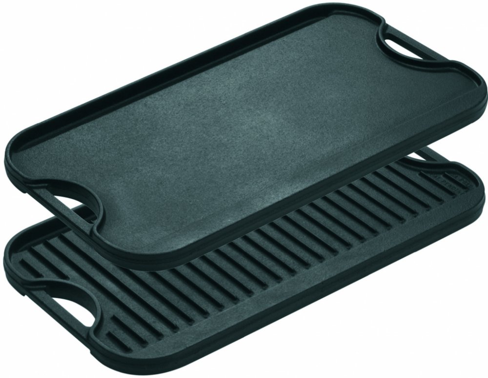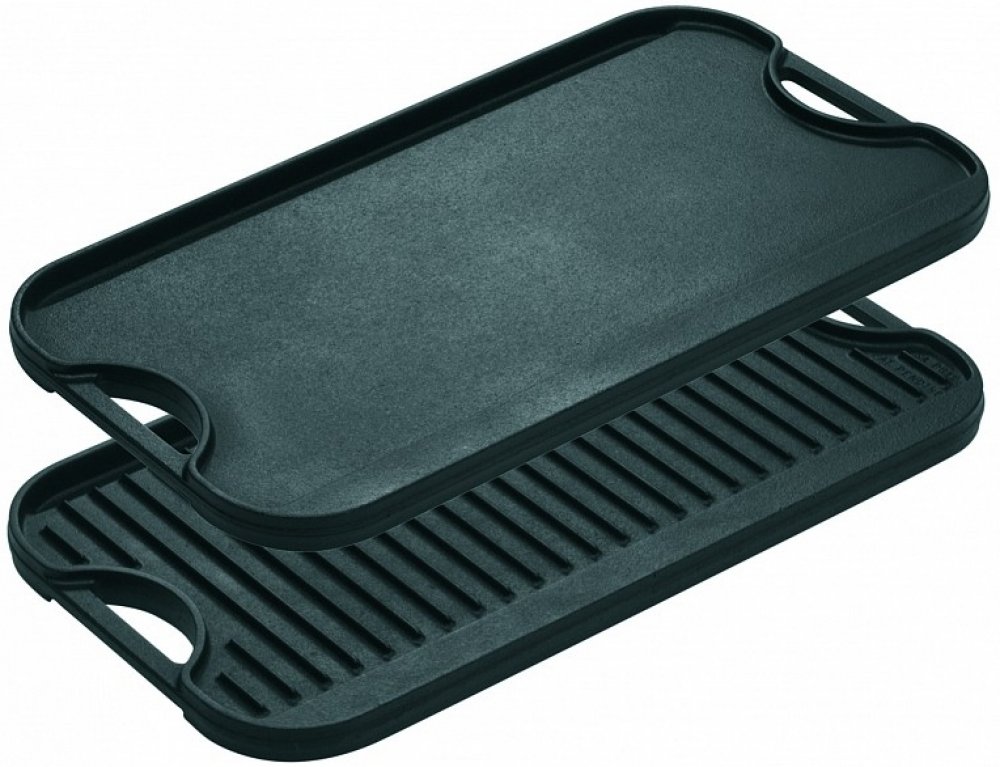 Litinové nádobí Lodge vyrábí tato americká značka v Tennessee v USA již od roku 1896, kdy zakladatel Joseph Lodge svoji rodinnou firmu založil. Dlouholetá tradice výroby zajišťuje nejvyšší kvalitu jejich litinových produktů a můžete si být jisti, že Vám vydrží třeba i několik generací. Značka Lodge je dnes po celém světě uznávána jako největší autorita, co se litinového nádobí týče. Lodge cast iron cookware je jednoduše světový pojem, od kterého se všechny ostatní značky učí a u kterého se inspirují. Vaření na litině má několik výhod, ale hlavní přednosti má litina dvě. První je perfektní akumulace a vodivost tepla. Díky ní je zajištěno rovnoměrné rozpálení nádobí po celé ploše. Druhou předností je extrémně dlouhá, v podstatě trvalá životnost tohoto nádobí. Čím častěji litinové nádobí Lodge používáte, tím více získává litinová pánev nebo hrnec na kvalitě. Používáním se na litině vytváří patina, která zdokonaluje nepřilnavost nádobí. Zároveň tato patina vytváří ochrannou vrstvu na litině, která opět prodlužuje její životnost. Dalo by se tak říct, že litina s četným používáním vylepšuje své vlastnosti. Jedná se tak o skvělou investici, protože časem neztrácí na hodnotě, spíš naopak. Litinové nádobí Lodge je také velmi přírodní produkt. V podstatě je složeno jen ze železa a oleje, neobsahuje žádnou chemickou povrchovou úpravu. Navíc díky výrobě z recyklovaných kovů pochází z udržitelné produkce a lze jej označit za ekologický výrobek, ostatně i díky jeho dlouholeté životnosti. Oboustranný litinový tál Lodge Litinové plechy, tály a pekáče Lodge jsou nabízeny v několika provedeních s různými rozměry a s různou výškou okrajů. Lodge oboustranný tál je určen jak pro vaření doma, tak jej můžete využít i venku na grilu. Také je vhodný tento litinový tál na oheň – můžete jej umístit přímo k rozžhaveným uhlíkům do ohniště a vařit takto na ohni, litině tyto teploty nijak nevadí. Oboustranný litinový tál má z jedné strany hladký povrch, který je ideální třeba na pečení všech menších kousků masa i zeleniny, nebo na přípravu různých omelet a lívanců. Z druhé strany je povrch vroubkovaný – ideální na steaky. Tál již má z výroby připravený první seasoning (patinu) a je tak nachystán ihned k použití. V našem speciálním článku se můžete podívat, jak na re-seasoning a jak pečovat o litinu. V tomto článku se dozvíte také, jak litinové nádobí používat. „Made to cook anything anywhere for generations“ – heslo firmy Lodge. Volně přeloženo – Stvořeno pro vaření čehokoliv, kdekoliv a po generace. Připojte se k rodině Lodge, k nadšencům vaření na litině doma i venku v přírodě. Oboustranný litinový tál Lodge 51 x 27 cm a jeho vlastnosti v bodech: univerzální využití – do grilu (jakéhokoliv typu), na otevřený oheň v přírodě, na plynový sporák, do trouby perfektní akumulace a vodivost tepla používáním vzniká ochranná patina a přirozeně nepřilnavý povrch rozměry: 51 x 27 cm výška okrajů: 2 cm celkem (cca 5 mm na každou stranu) hmotnost: 6,1 kg