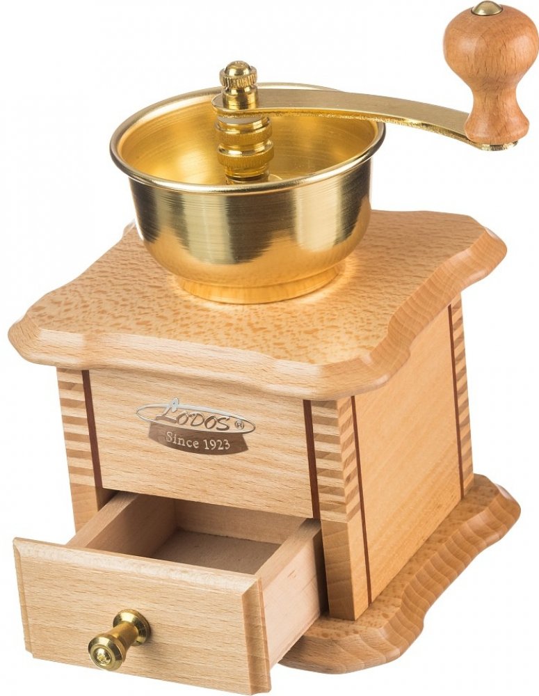 Krásný mlýnek na kávu od předního českého výrobce je vyroben z pravého bukového dřeva a je tmavě mořený. Mlýnek je osazen ocelovým frézovaným mlecím systémem, který je zhotoven na automatických strojích a je odborně kalený. Tento osvědčený způsob výroby zaručuje velmi dlouhou životnost mlýnku. Záruka 10 let se vztahuje na mlecí ústrojí. Systém seřízení pomocí šroubku nebo matky umožňuje nastavení jemnosti mletí na požadovaný stupeň od velmi hrubého mletí až po velmi jemné. Samozřejmostí je i ruční moření dřeva mlýnku. Lodos Kávomlýnek tmavý v sobě spojuje tradiční výrobní postupy a ruční práci s tradičním designem. Mlýnek na kávu je vhodný i do moderní domácnosti. Tento kávomlýnek se stane skvělým pomocníkem ve Vaší kuchyni a navíc ho můžete využít i jako dekoraci. Kávomlýnek má v přední části ozdobný štítek s logem značky viz detailní foto.