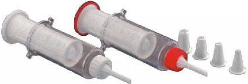 Balení obsahuje 1 ks pístové trubky a 4 ks výměnných trysek (nástavců) různých velikostí.