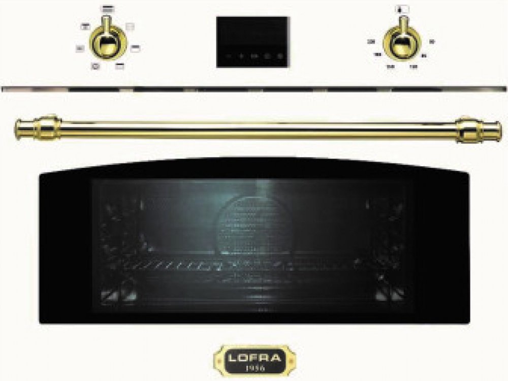 Retro multifunkční kompaktní trouba Lofra FMBPM66ME, vestavěná, barva perleťově bílá, multifunkce - gril, horkovzduch, mikrovlny, ší­ře 60 cm, výška 44,6 cm, 6 programů, objem trouby 38 l, Teplotní rozsah 40-220°C, vnitřní osvětlení, LED displej, zlaté dop...