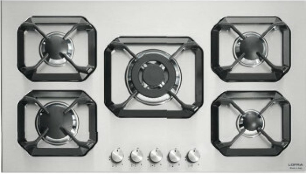 Indukční a plynová retro varná deska Lofra HLS9G2I, ší­ře 90 cm, vestavná, barva nerez, doplňky nerez, 3 hořáky + 1 turbo, indukce 2 plotýnky - šíře 30cm, ovládání knoflíky v předu.