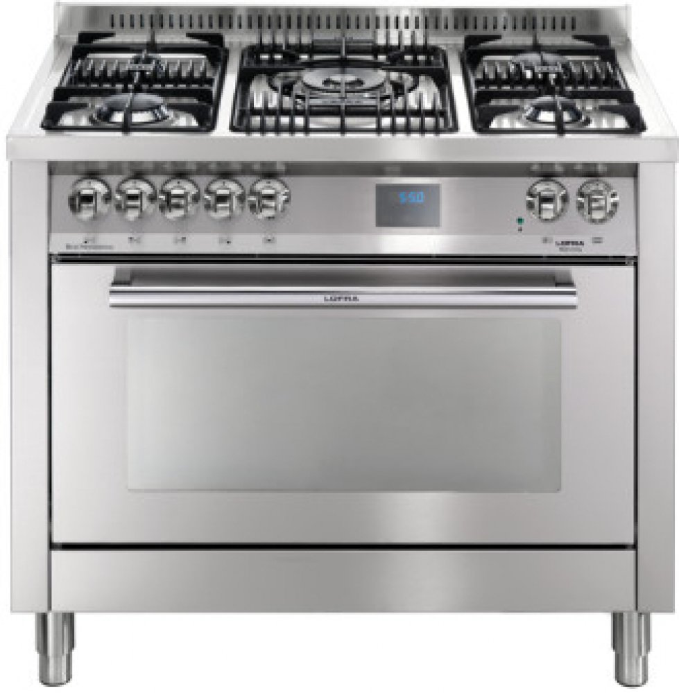 Kombinovaný sporák Lofra PG106MFT/UI, volně stojící, ší­ře 100 cm, plynová deska a elektrická trouba, barva nerez, 5 plynových hořáků, objem trouby 101 l, energetická třída A. Rozměry ŠxHxV: 100x60x85 / 90,5cm.