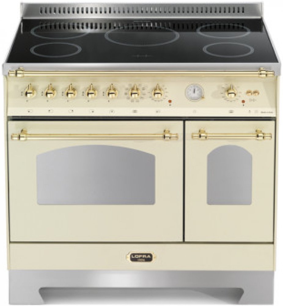 Retro sporák s indukční deskou Lofra RBID96MFTE/5I, volně stojící, indukční deska a dvakrát elektrická trouba, barva krémový, ší­ře 90 cm, 2 úrovně teleskopických výsuvů v hlavní troubě, 5 indukčních zón, tangenciální chladicí sys...