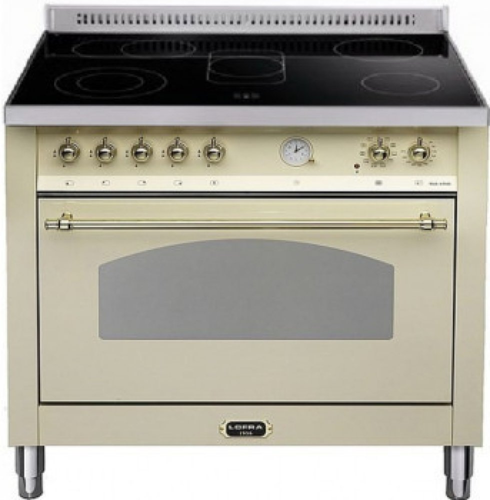 Retro sporák s indukční deskou Lofra RBIG96MFT/5I, volně stojící, indukční deska a elektrická trouba, barva slonová kost - krémový, ší­ře 90 cm, 2 úrovně teleskopických výsuvů, 5 indukčních zón, tangenciální chladicí systém, objem troub...