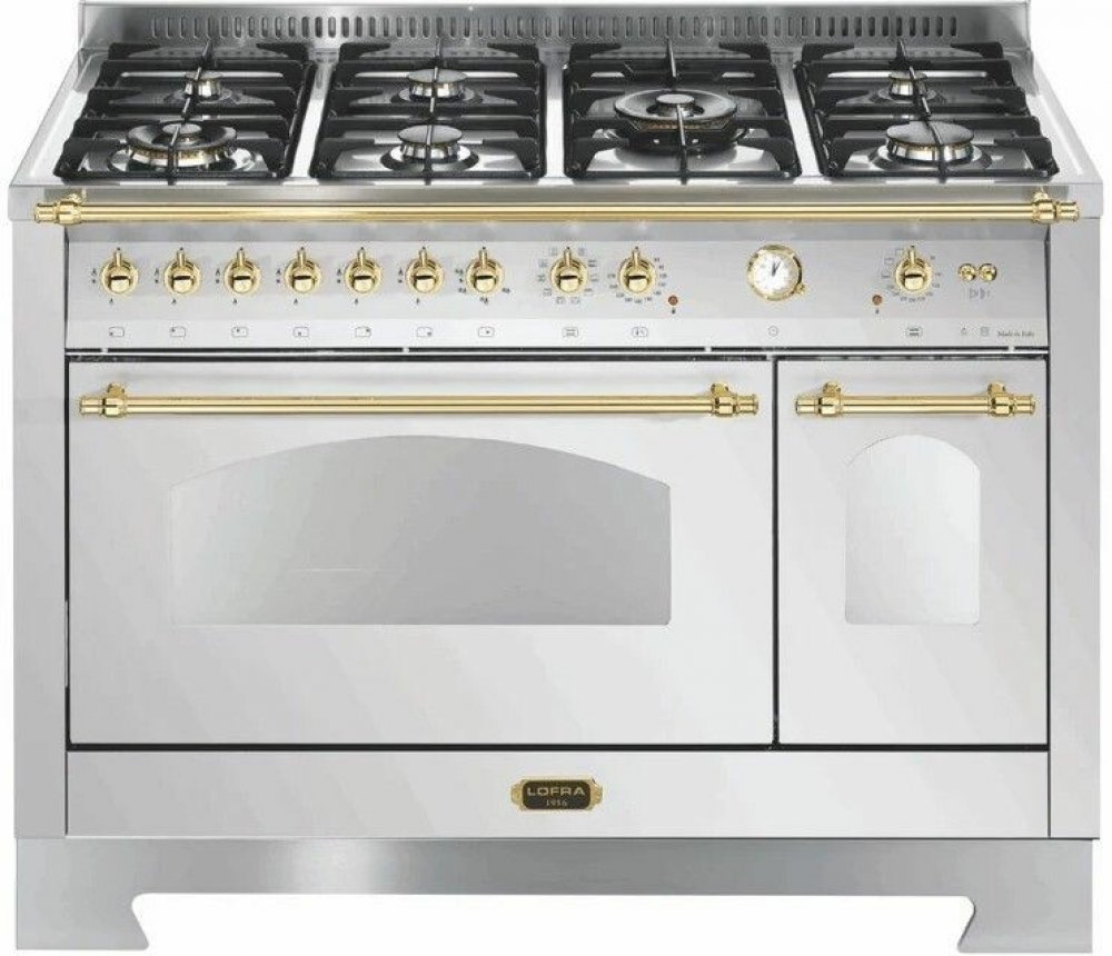 Retro sporák kombinovaný Lofra RSD126MFT+E/2AEO, volně stojící, plynová deska 7 hořáků , barva Nerezová, ší­ře 120 cm, teleskopické výsuvy v hlavní troubě, dvakrát elektrická trouba, hrubý objem hlavní trouby 101 l., hr...