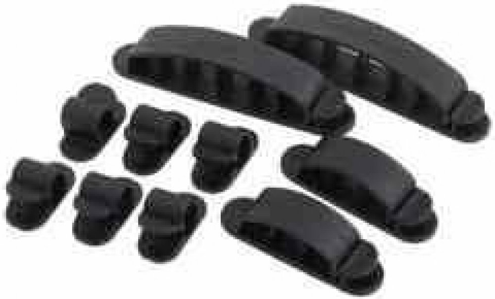 Kabelový organizér – Elastické upevnění – Systém montáže na lepidlo (oboustranná lepicí páska) na hladké povrchy – 3 různé velikosti pro optimální umístění
