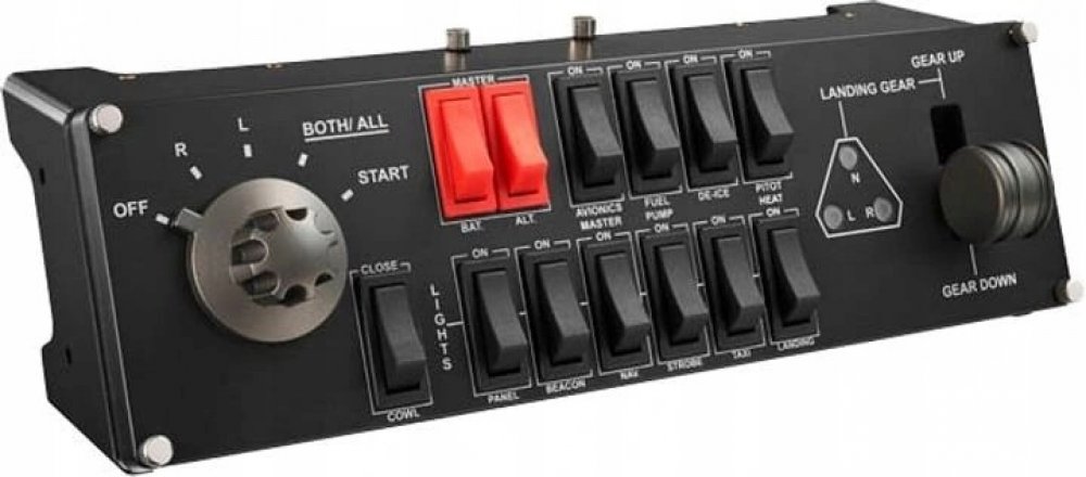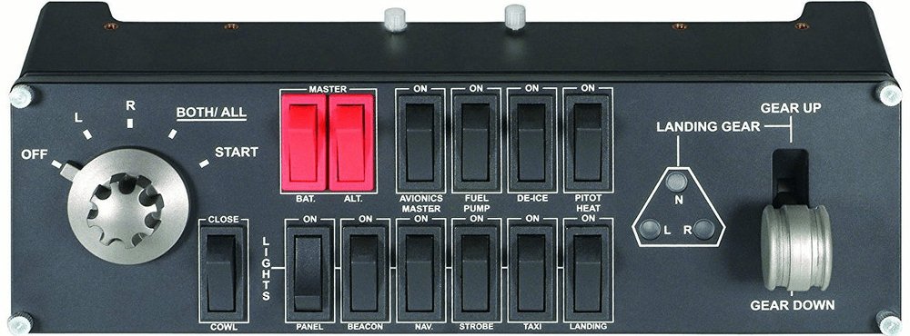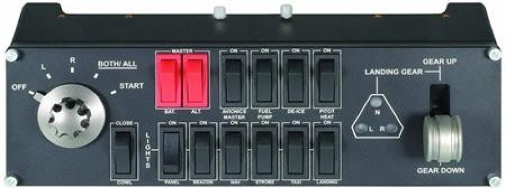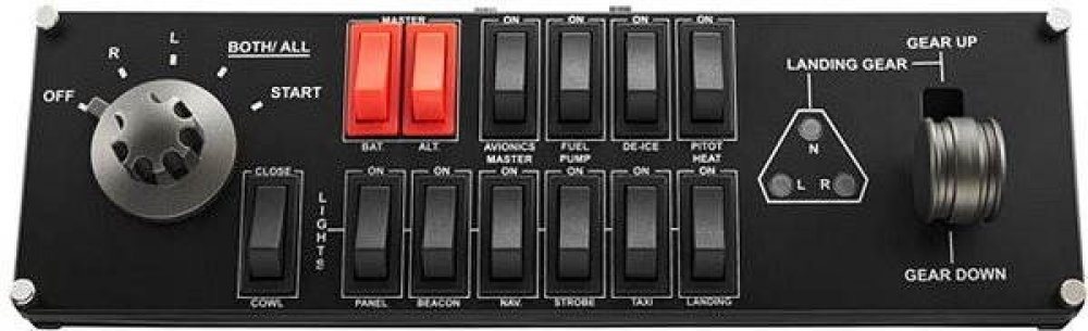 Saitek's Professional Flight Switch Panel is ideal for expanding the number of controls in your flight simulator setup. Attach it to your Logitech G Flight Yoke, place it atop your desk, or even mount it to your own custom cockpit setup. Control your landing gear and lights, engine power and other important aircraft functions, all from one compact unit.