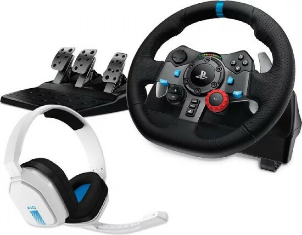 Logitech G29 Wheel+A10 PS4 Headset White 991-000486