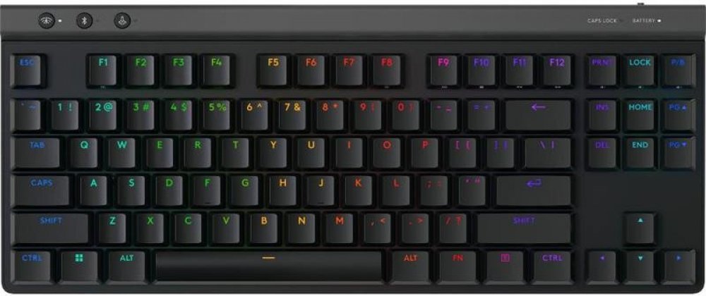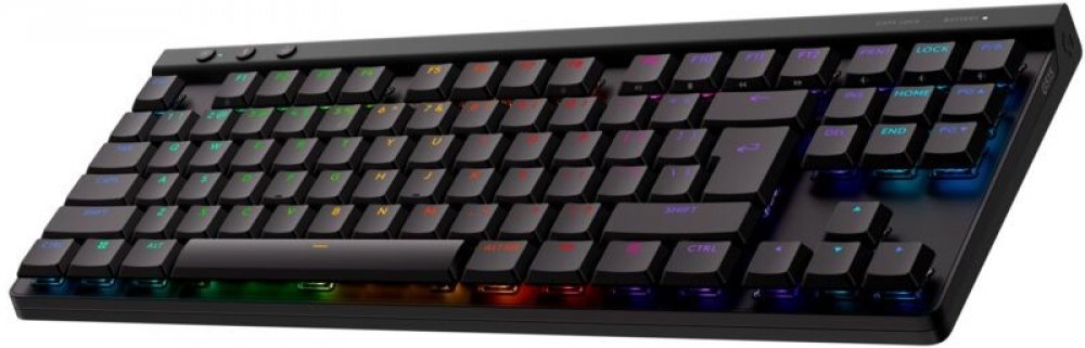 Bezdrátová herní klávesnice v provedení TKL (Tenkeyless, bez numerické části) disponující nízkoprofilovými mechanickými hmatovými spínači GL. Nabízí RGB podsvícení, které lze nastavit z palety 16,8 milionu barev. Vytvořte si vlastní animace, nebo si díky technologii LIGHTSYNC vyberte z předvolených efektů, kdy je podsvícení řízeno hrami, zvukem nebo obsahem obrazovky. Připojení k počítači lze realizovat jak bezdrátově pomocí technologie Bluetooth či miniaturní USB přijímač s technologii 2,4 GHz, tak i drátově pomocí USB kabelu. Na jedno nabití vydrží baterie v chodu až 36 hodin.