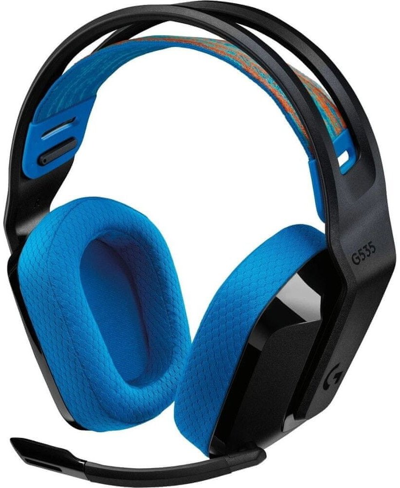 Při pouhých 236 gramech je souprava G535 menší a lehčí než model G733. Závěsná konstrukce hlavového mostu pomáhá rozprostřít váhu a zmírnit tlakové body. Náušníky z měkké paměťové pěny a materiál z prodyšné síťoviny zajišťují pohodlí během herních akcí.
