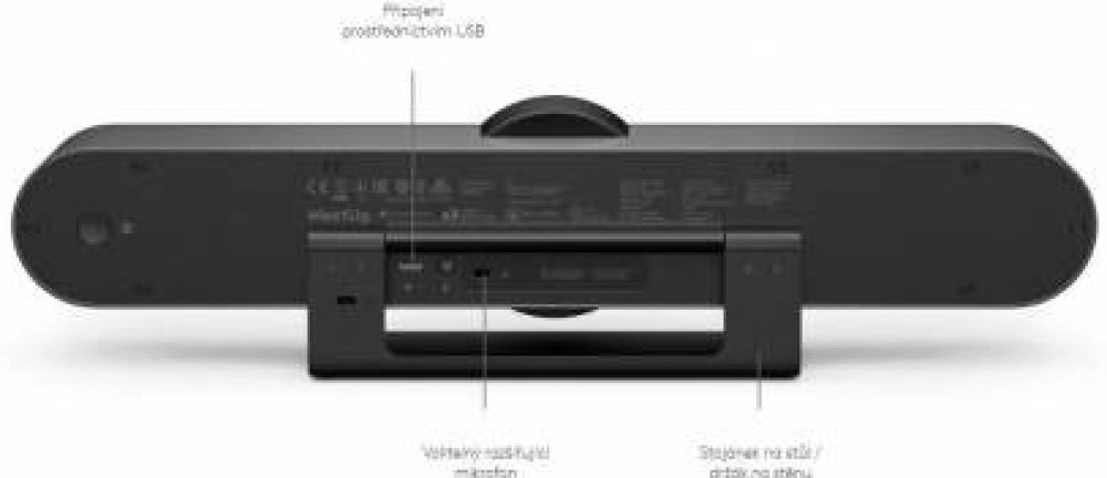 Kamera MeetUp, zázrak miniaturizace, díky svým kompaktním rozměrům a elegantním křivkám krásně zapadne do malých místností a menších konferenčních prostor. Při šířce pouhých 400 mm (15,75 palce) je kamera MeetUp dostatečně kompaktní, aby se dala umístit na pojízdný vozík, do skříňky, nebo nad či pod displej.