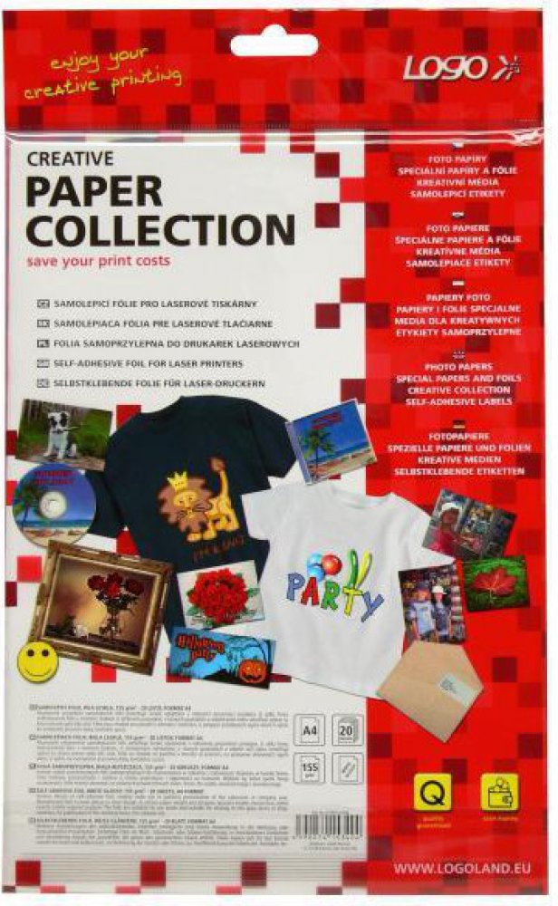 Logo samolepicí papír, lesklý, bílý, A4, 155 g/m2, 2400dpi, 20 listů, pro laserové tiskárny, L 15342