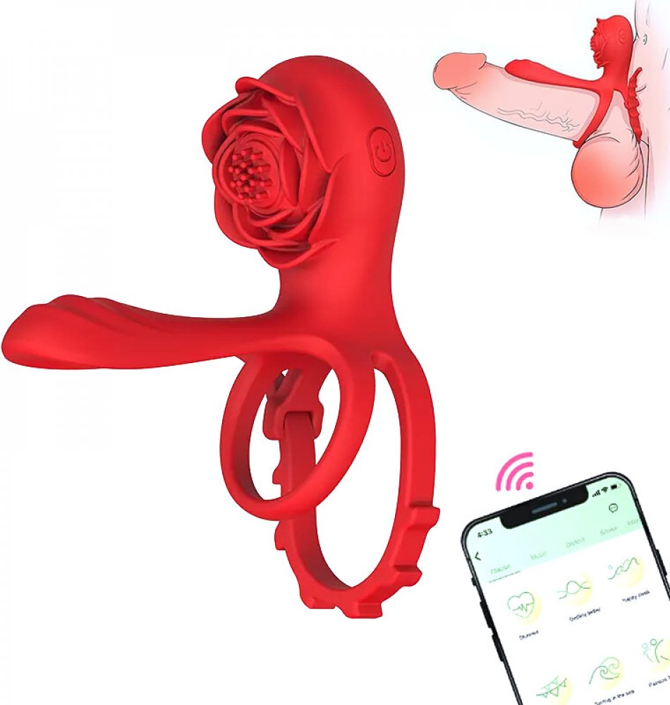 Logvin Rose Unique Vibrační kroužek na penis zpevní erekci, prodlouží sex a stimuluje penis, klitoris i bod G.