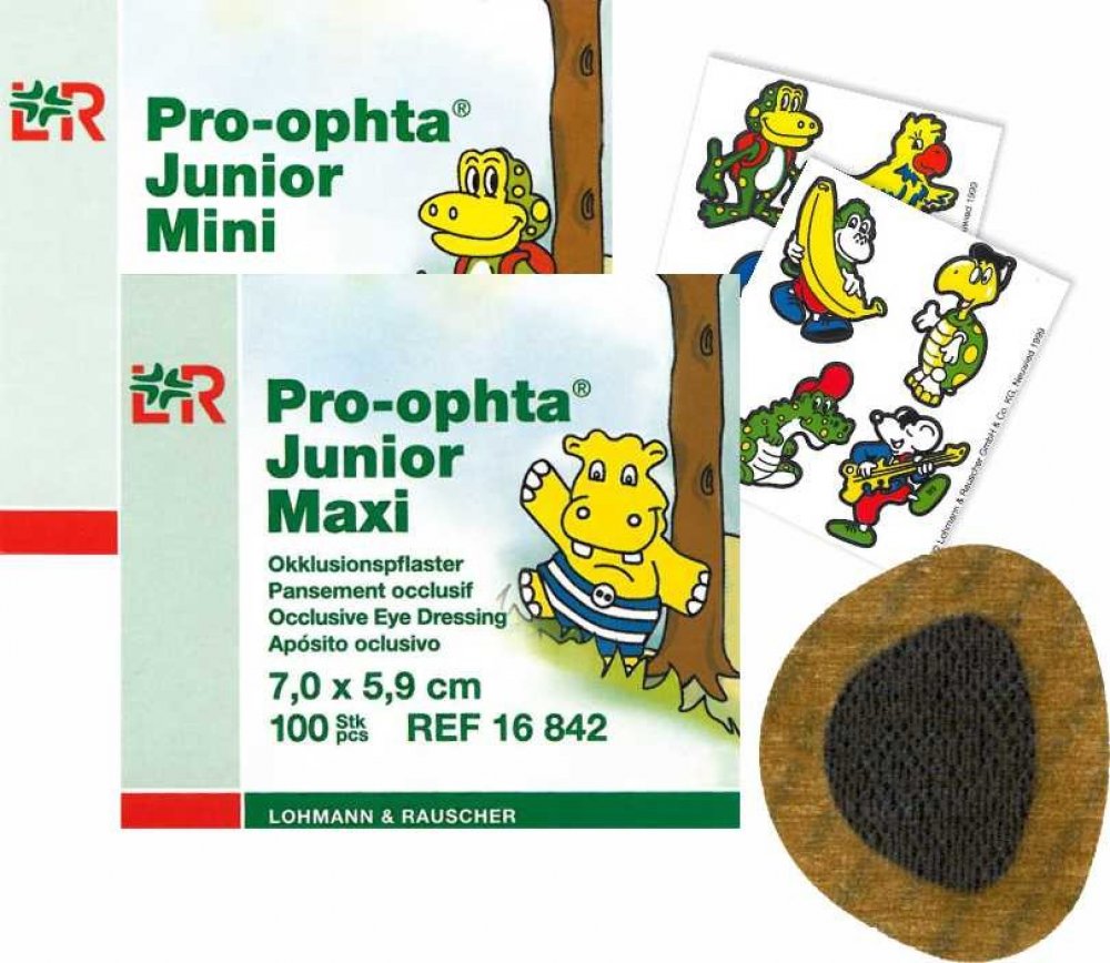 Pro-Ophta Junior okluzní náplasti slouží k překrytí oka při léčbě amblyopie (tupozrakosti).