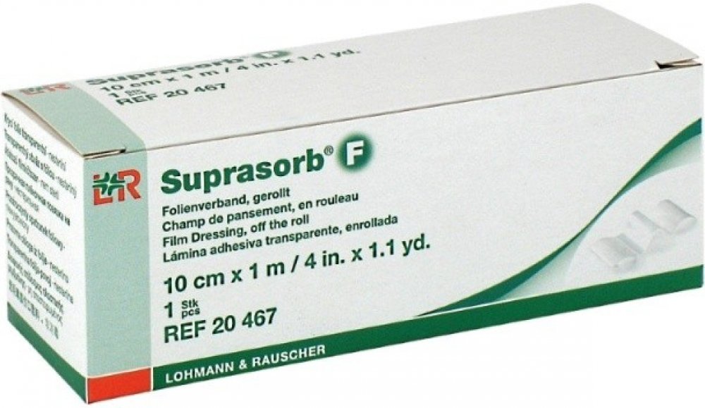 Tenký transparentní polyuretanový film zaručuje optimální vlhké prostředí rány a umožňuje současně únik vodní páry. Aplikace je extrémně jednoduchá. V prvním kroku se fólií přelepí čerstvé tetování na prvních cca 24 hodin. Po sundání fólie se tetování umyje antibakteriálním mýdlem. Pro dokonalé očištění doporučujeme použít také lékařskou houbičku Debrisoft. Následně se umyté a osušené tetování přelepí novou fólií, která se sundá za následujících 3-7 dní, v závislosti na individuální rychlosti hojení. Informace o produktu Výrobce: LOHMANN & RAUSCHER GMBH Značka: SUPRASORB Kód výrobku: 31299 Kód EAN: 4021447204628 Kód SÚKL: A39610 Držitel rozhodnutí: LOHMANN & RAUSCHER GMBH Registrovaný léčivý přípravek, pozorně čtěte příbalovou informaci. Suprasorb® F Fólie - elastický a přilnavý polyuretanový film. Způsob účinku: Tenký transparentní polyuretanový film zaručuje optimální vlhké prostředí rány a umožňuje současně únik vodní páry. Indikace: Suprasorb F je určen k pooperačnímu ošetření ran, pro povrchové, slabě secernující rány, především také k ochraně čerstvého epitelu u ran, které až do zhojení potřebují vlhké prostředí, např. ulcus cruris venosum v reparační fázi. Spolehlivá možnost vizuální kontroly i při použití k fixaci kanyl, infuzních katetrů nebo drénů. Suprasorb F může být použit jako fixace pro Suprasorb A, G nebo C. Suprasorb® F Fólie, Rozměry: 15cm x 10m Balení: krabice s rolí folie
