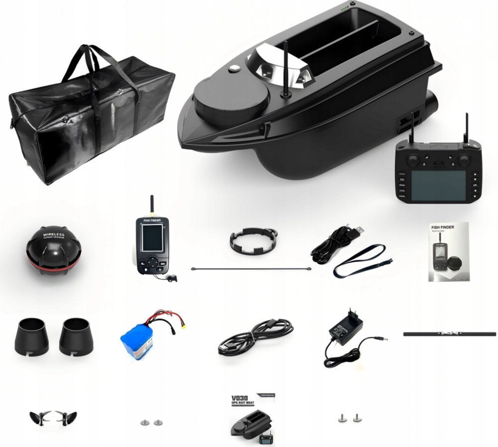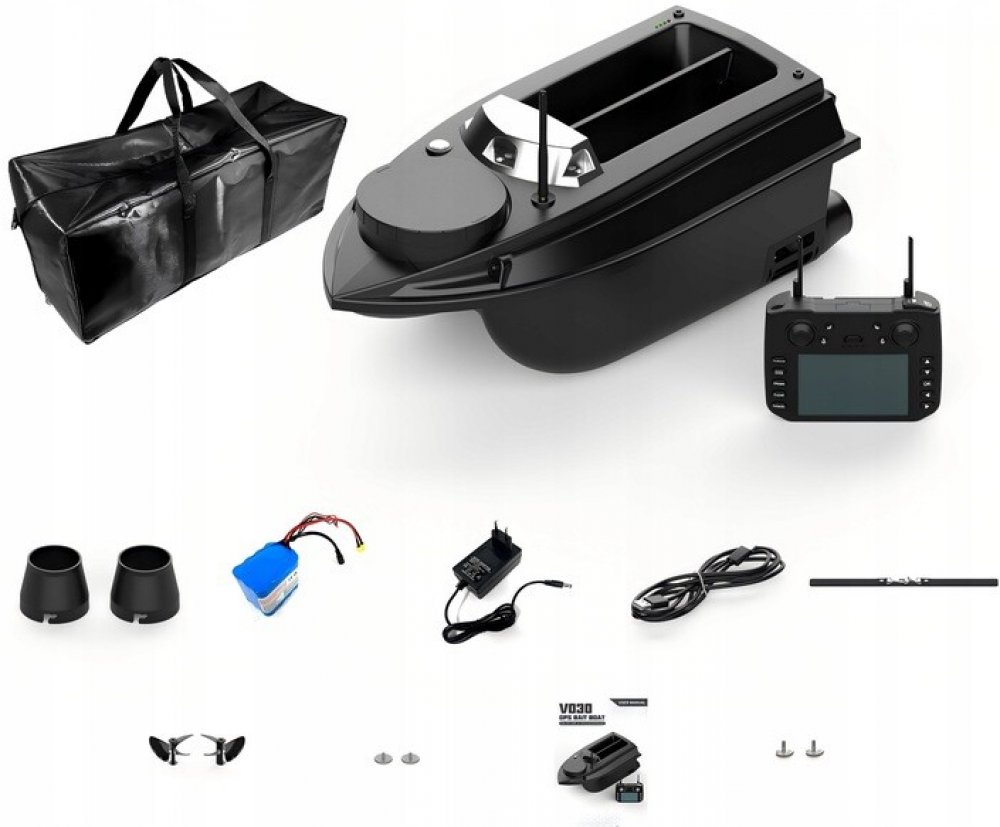Model V030 je pokročilá návnadová loď pro náročné rybáře. Nabízí 800 m dosah ovládání, GPS s 180 paměťovými body, sonar pro lokalizaci ryb a akumulátor 12V 20000mAh s dlouhou dobou provozu.