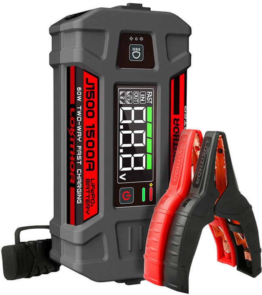 Jump startér Lokithor J1500 je vhodný pro startování benzinových motorů do objemu 7 litrů a dieselových motorů do objemu 4,5 litru. S jeho pomocí úspěšně nastartujete automobil, motocykl, loď, SUV, traktor apod. Na jedno nabití umožňuje až 60 startovacích cyklů. V sadě naleznete zipové pásky pro zajištění funkčnosti startéru.