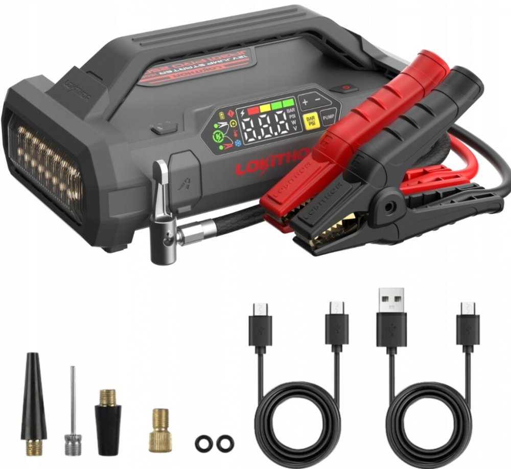 Lokithor JA302 PRO je multifunkční automobilový startovací zdroj se startovacím proudem až 1700A určený ke startování 12V vozidel (až 9-litrový benzínový motor nebo 7.5-litrový dieselový motor) během okamžiku. Kompaktní design kombinuje s tímto malým snadno přenosným boosterem i vzduchový kompresor, powerbanku a svítilnu. To vše s hmotností pouhých 1,9 kg díky lehké lithium-iontové baterii uvnitř....